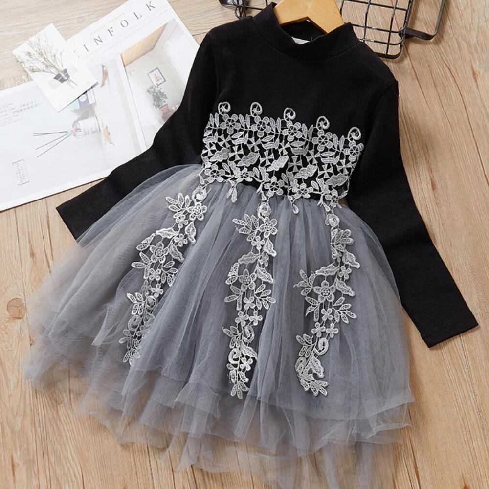 新作 女の赤ちゃんの衣装黒レースドレス女の子長袖ニットセーター幼児キッズ女の子ドレスパーティー服Vestidos