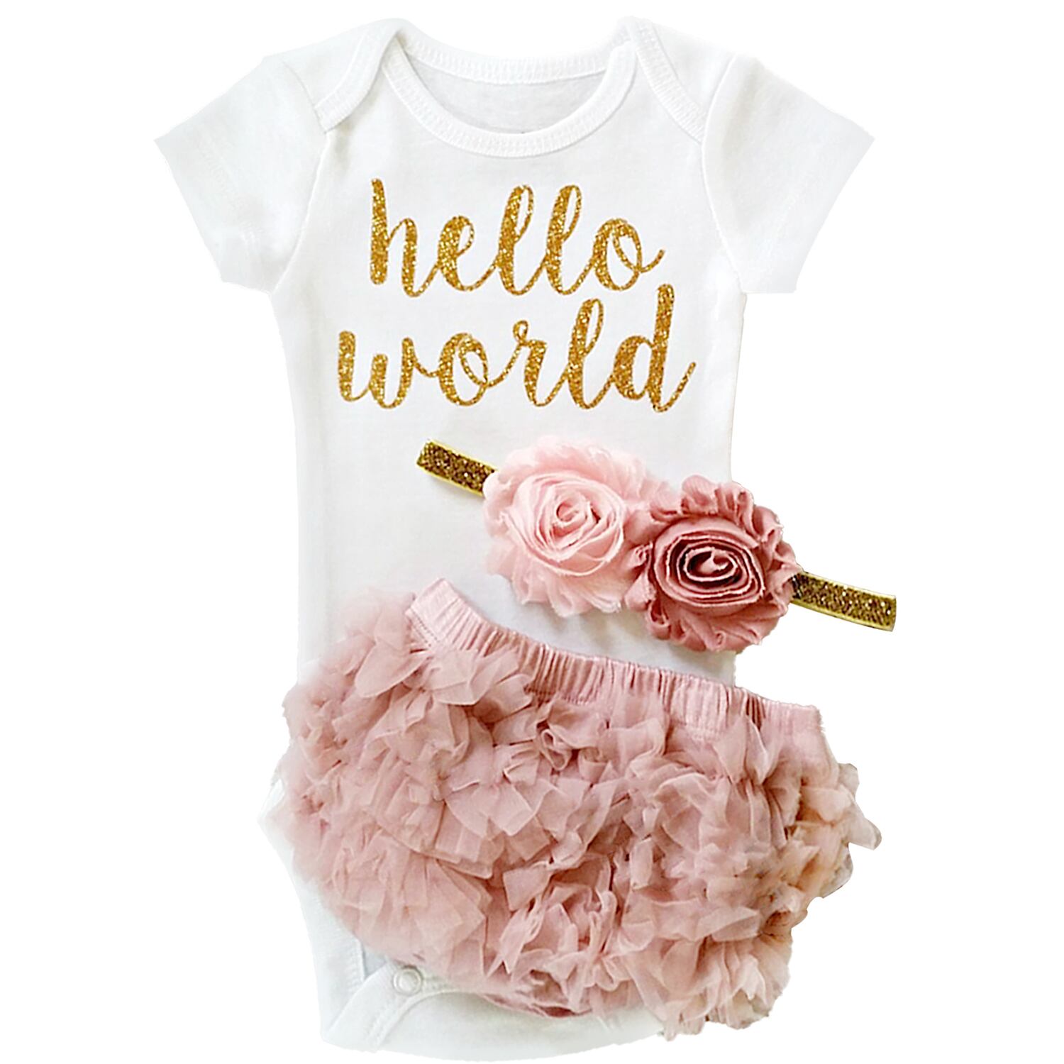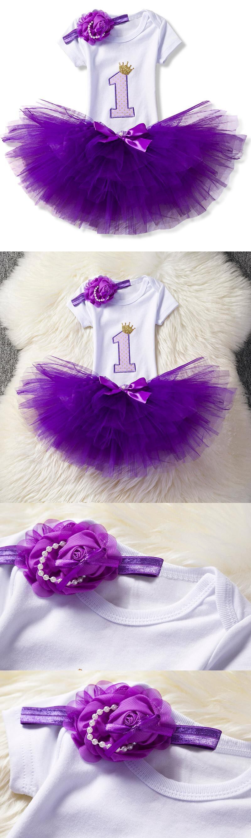 新作 生まれた赤ちゃんの女の子の服は私の最初の誕生日パーティーの衣装を設定します幼児洗礼服ロンパースフラワーショートヘッドバンド3個1年