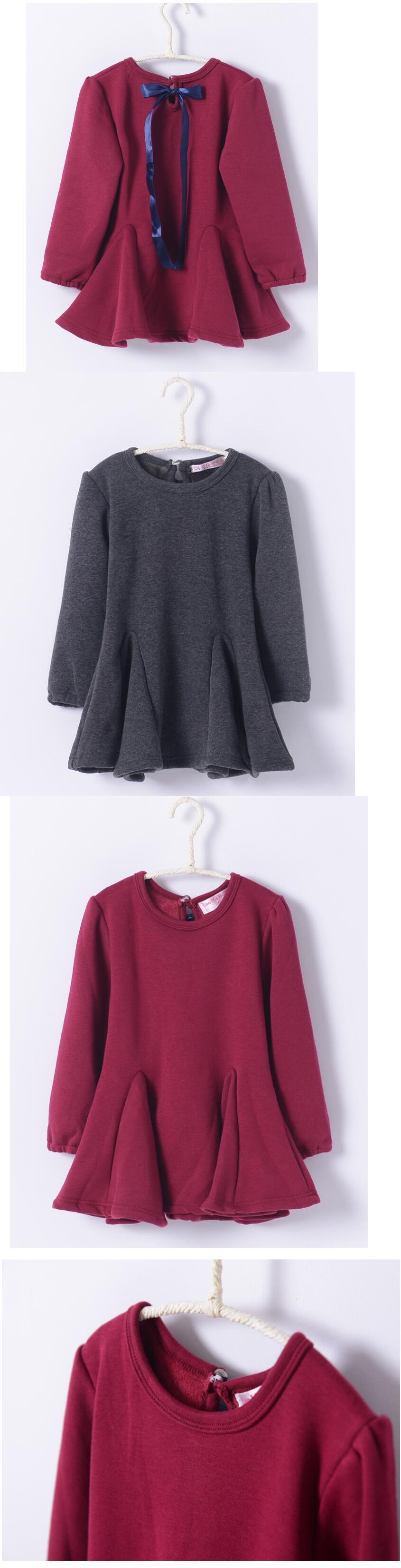 新作 ベビーウィンタードレス厚手のベルベットの子供たち暖かいセータードレス幼児カジュアルピュアカラープリーツプリンセスAラインドレス