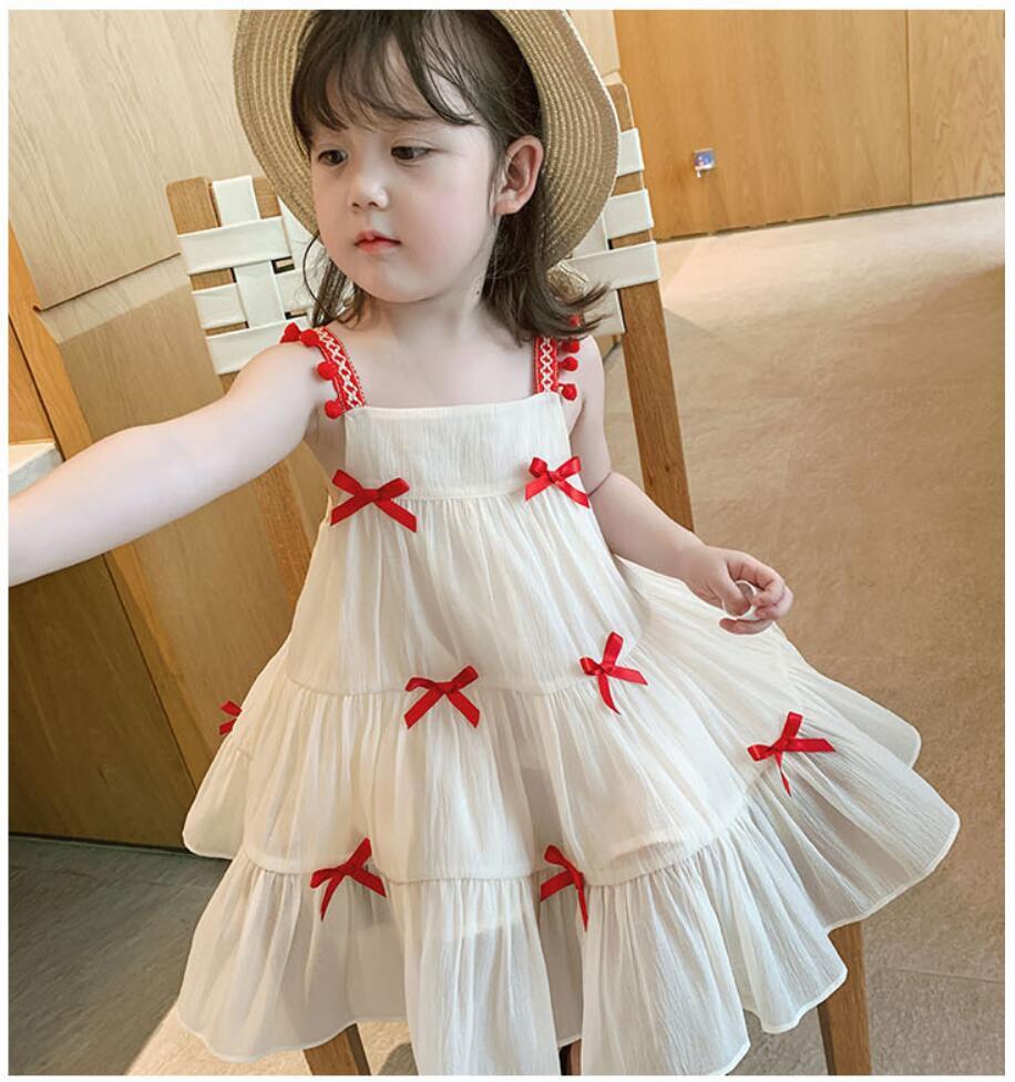 新作 女の子の夏のドレス甘い弓のサンドレス子供赤ちゃんの女の子の服かわいい子供たちのクリスマスドレス34 5 6 78歳