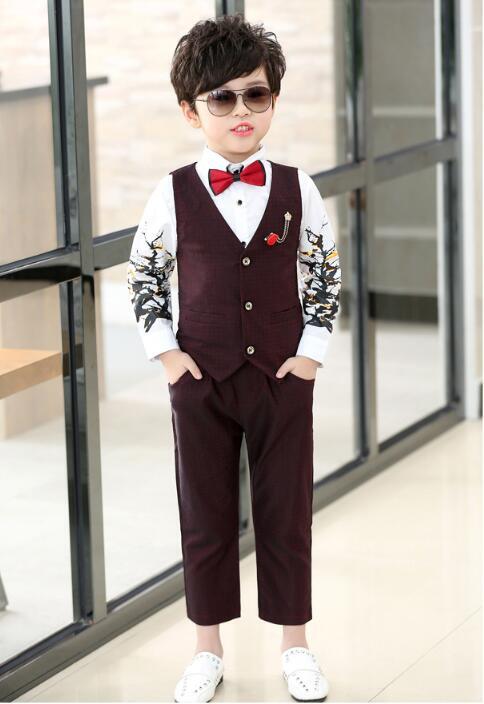 新作 ボーイズマルスーツウェディングウエディングパーティータキシードドレスキッズレッドセットベストパンツ2pcssキッズバースデースーツセット