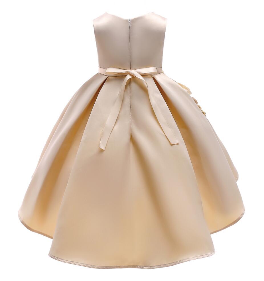 新作 女の赤ちゃんシルクラグジュアリードレスフラワーガールドレスバースデーパーティーキッズドレスプリンセス幼児の女の子子供クリスマス