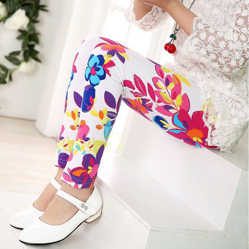 新作 女の子のレギンス子供夏の薄い鉛筆パンツかわいい幼児花柄スキニーパンツ子供弾性ウエストレギンス