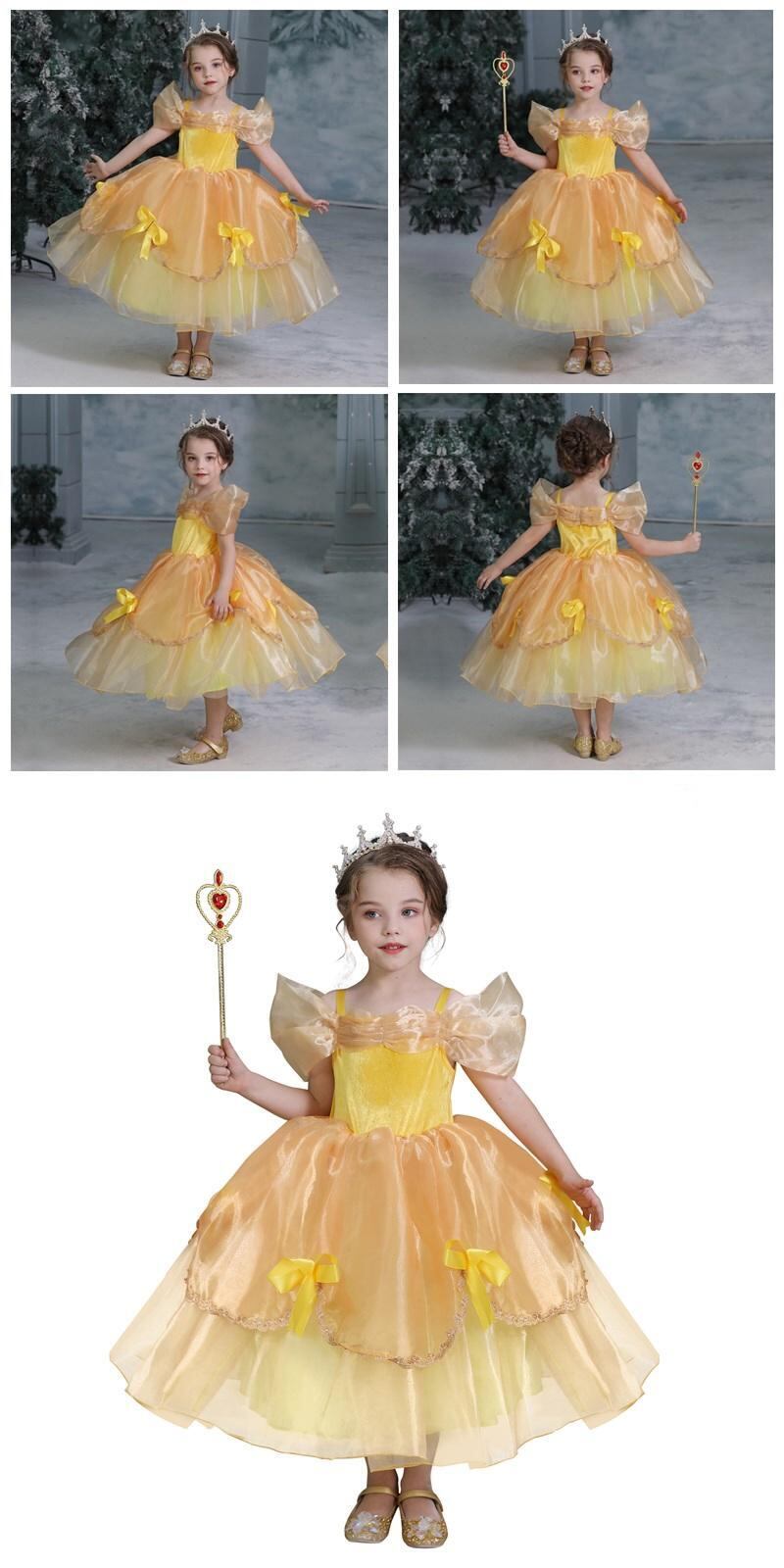 新作 女の子のコスプレパーティードレスアクセサリーセット女の子のロールプレイパーティーロングドレス4-10Y誕生日ウエディングドレス