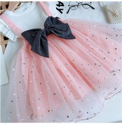 新作 女の赤ちゃんセットサマーフライングスリーブTシャツ+サスペンダースカートボウキッズ2PCSスーツ幼児の女の子シャイニングスター