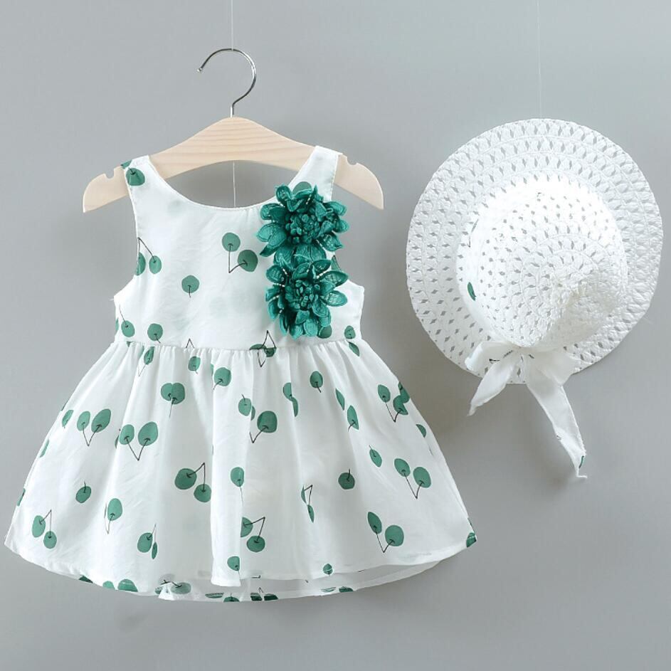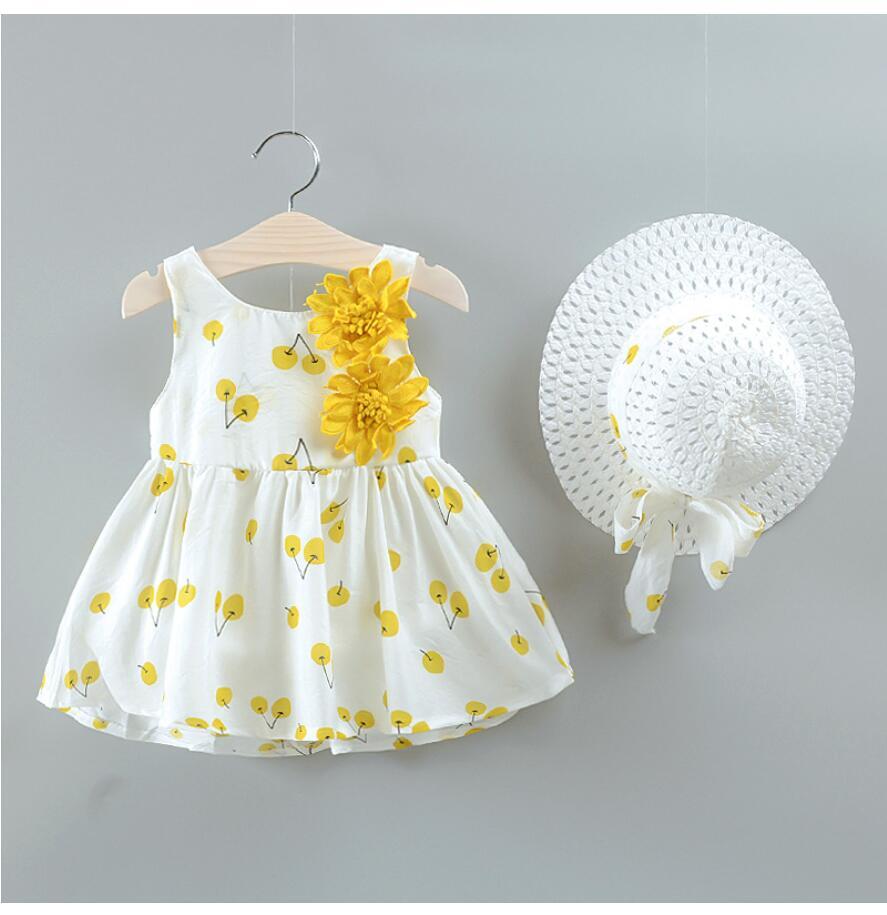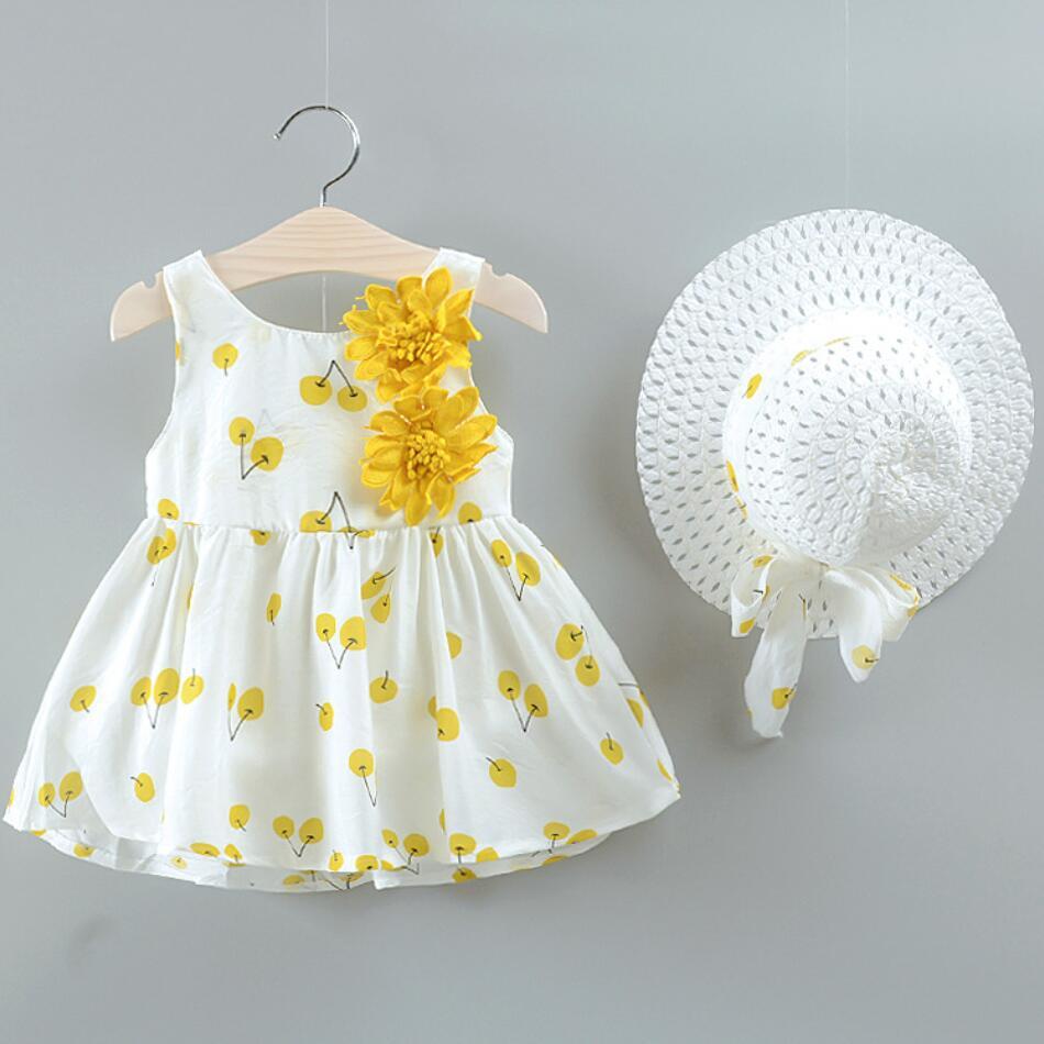 新作 春夏の女の赤ちゃん&幼児用のドレス 花のドレス+帽子 1歳の女の子の誕生日などベビースーツの衣装