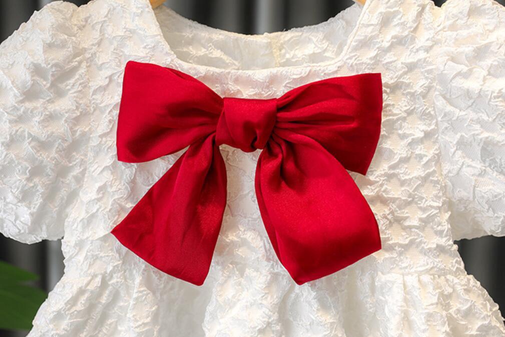 新作 幼児&女の子の赤ちゃん めちゃくちゃかわいいドレスフリル スリーブ 春夏の赤いリボンがかわいいドレス 1歳の誕生日パーティーやウエディングに最適 チュチュドレス