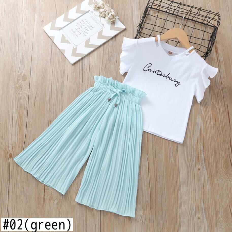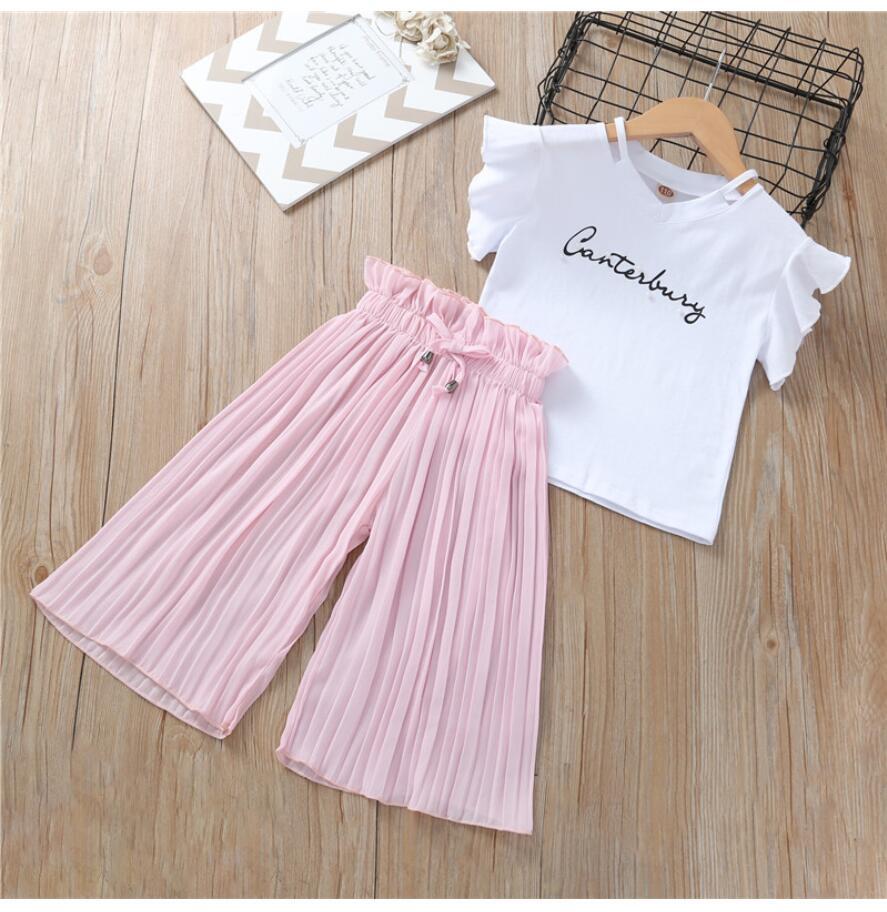 新作 2021ガールズセットサマーコットンTシャツ+シフォンパンツスーツ子供ベビーガール子供服45 6 7 8 9 1012年