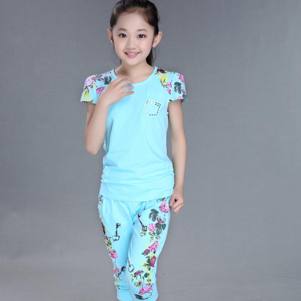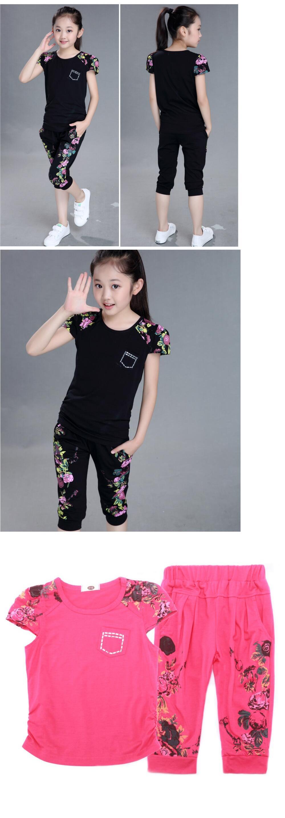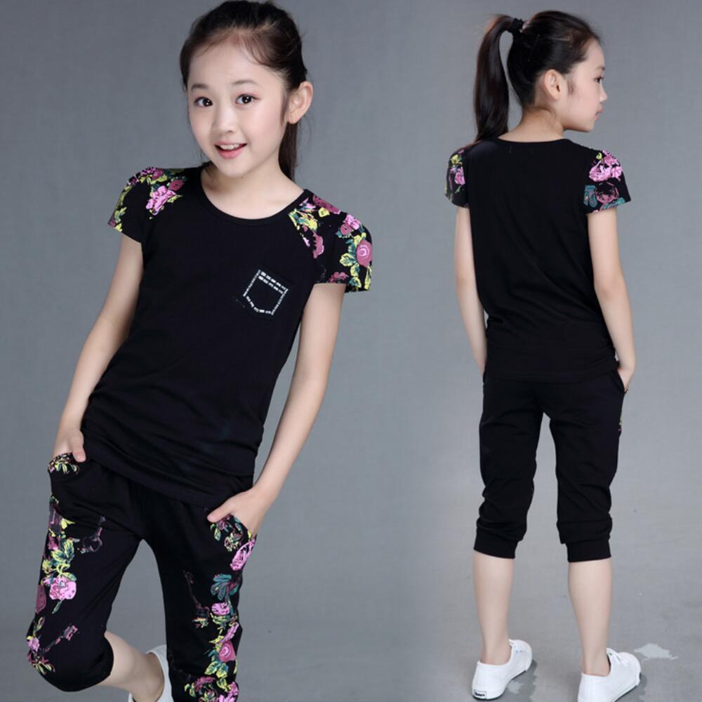 新作 3-10TガールズスポーツフローラルセットベビーキッズコットンTシャツパンツトラックスーツ2pcs服子供かわいい衣装