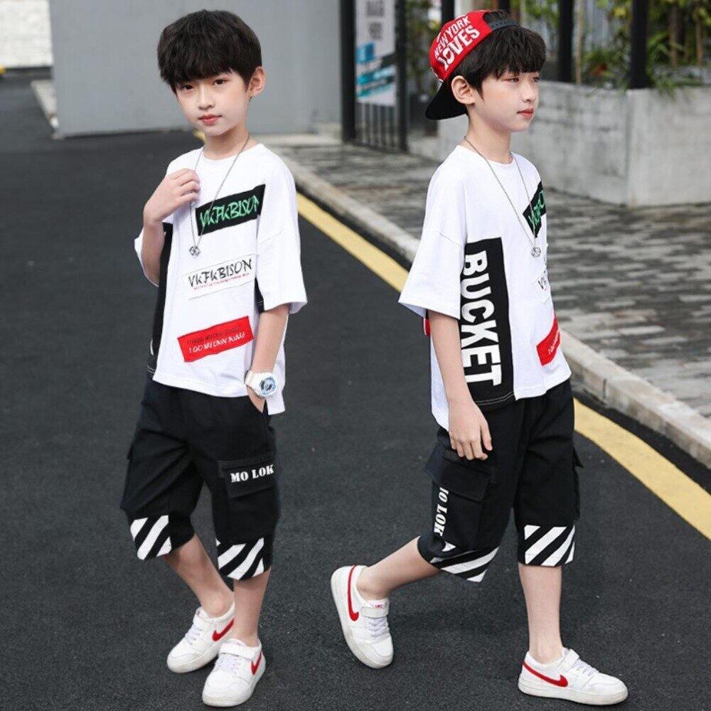 新作 ビッグ子供服セットボーイ2021ニューキッズツーピースボーイズサマー半袖スーツチャイルド45 6 7 8 9 10 1112歳