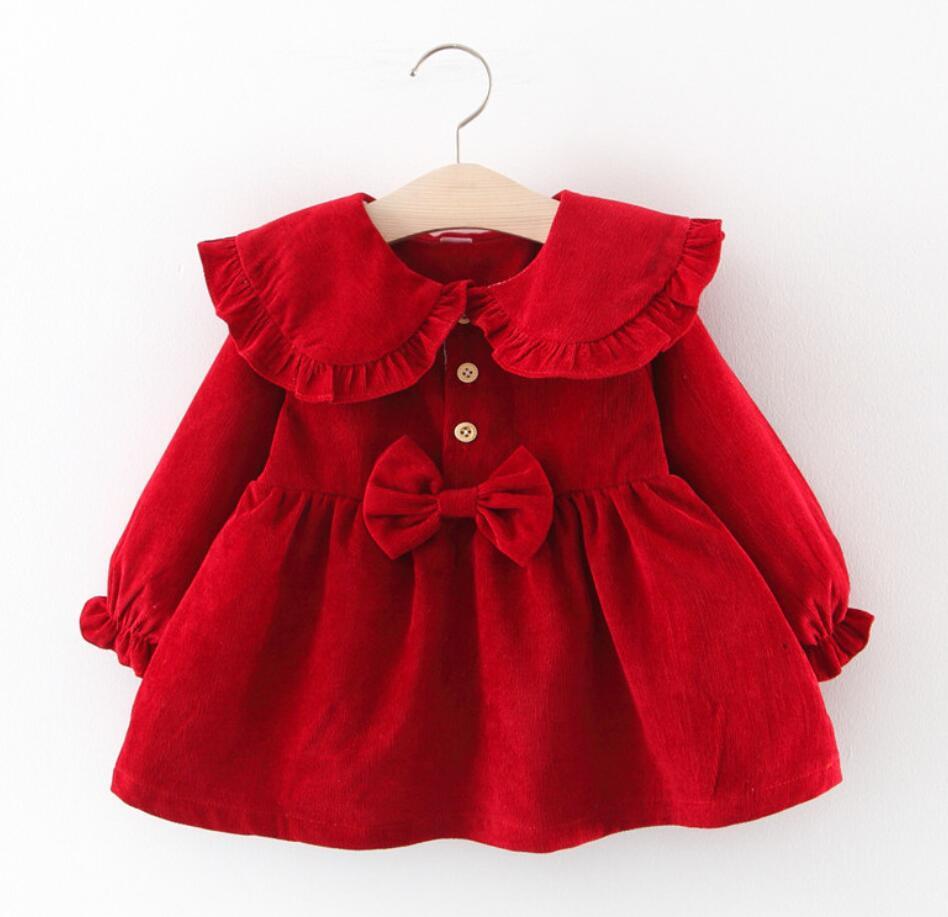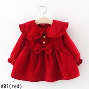 新作 クリスマスパーティーガールベビードレス幼児ワンピースドレス秋冬コーデュロイ服生まれの女の子服