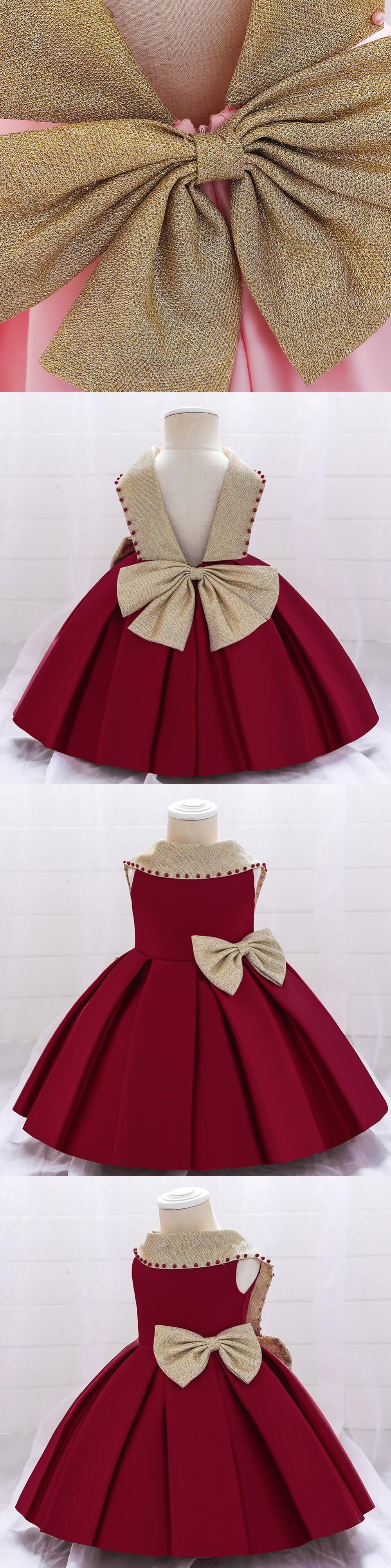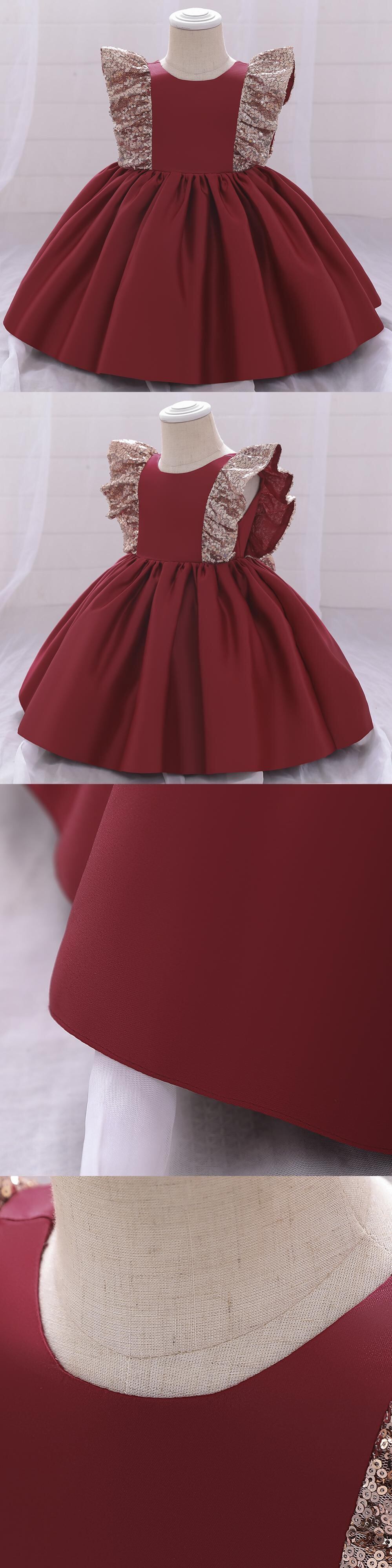 新作 2021年生まれのドレス1歳の誕生日ドレス女の赤ちゃんの服弓洗礼ドレススパンコールパーティーイブニングドレスバックレス