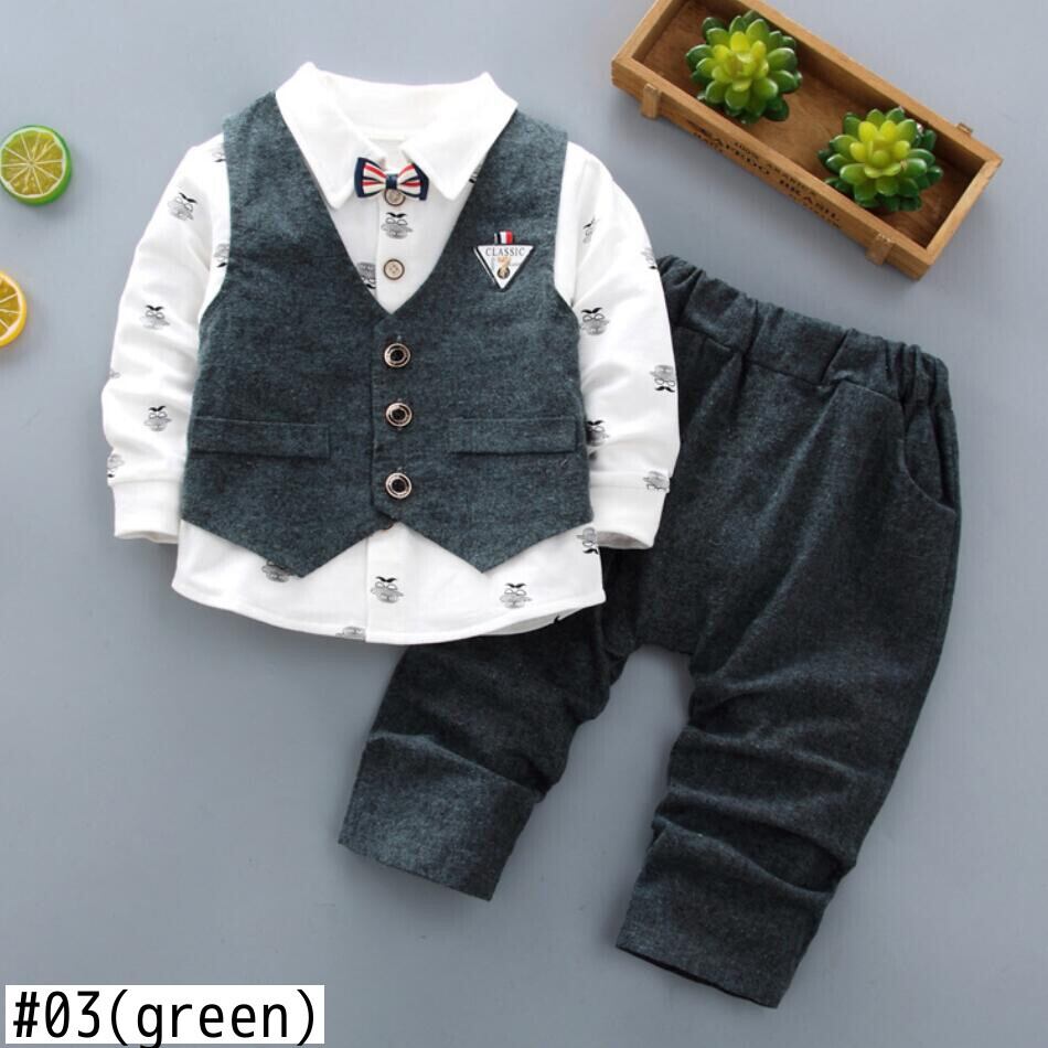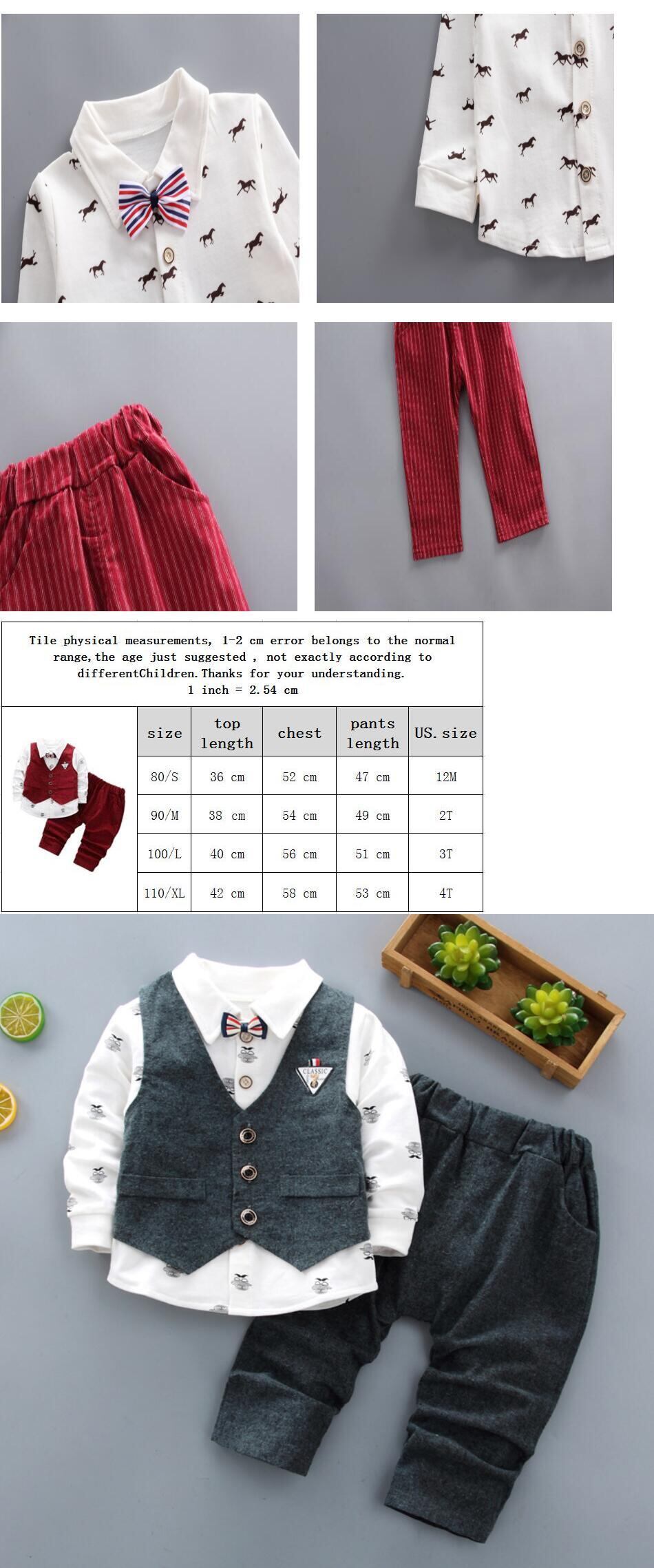 新作 男の子紳士セット綿長袖ボウタイシャツチョッキパンツ3個スーツベビーキッズ男の子パーティー服セット秋