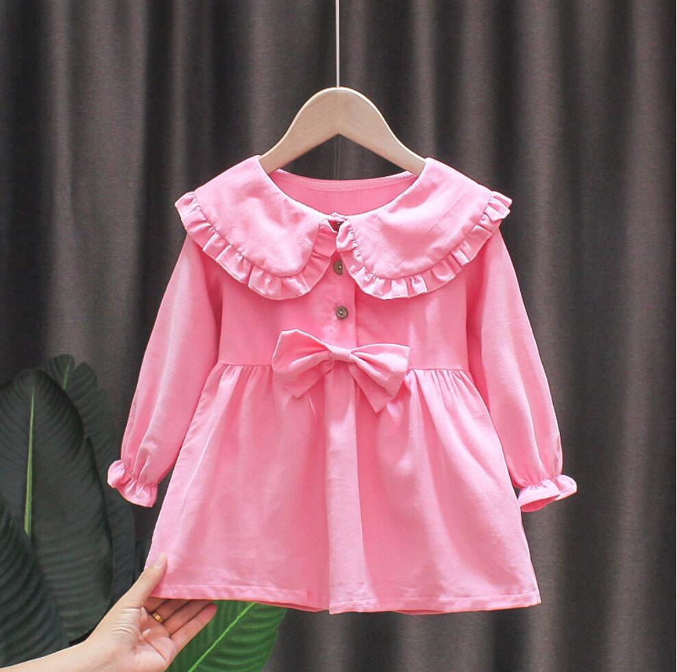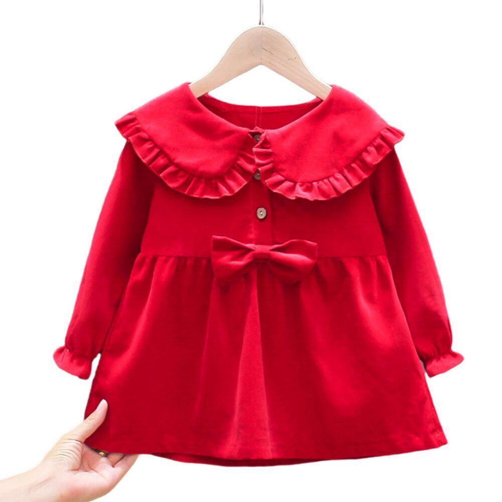 新作 2021年秋冬ベビーガールズ服長袖コーデュロイドレスキッズキュートドールカラーボウノットドレス