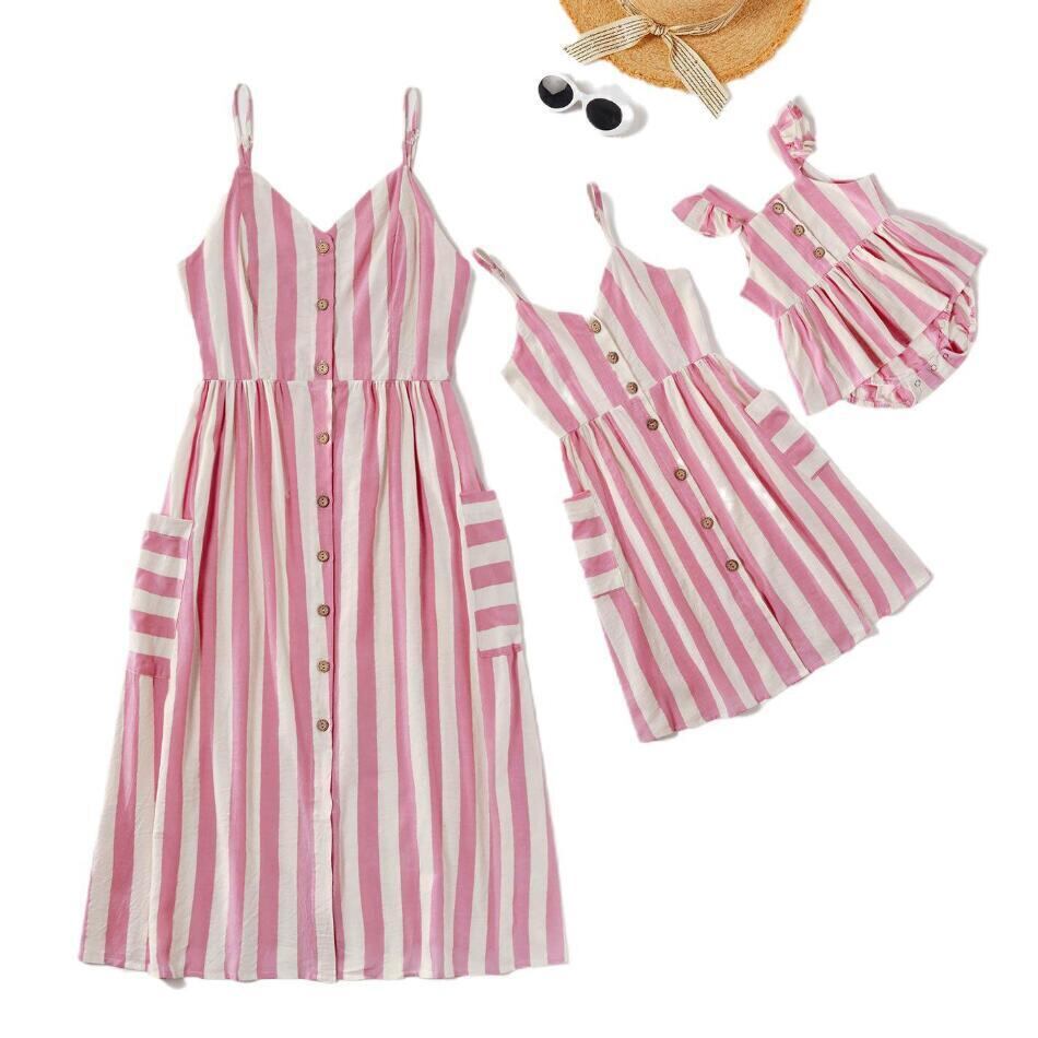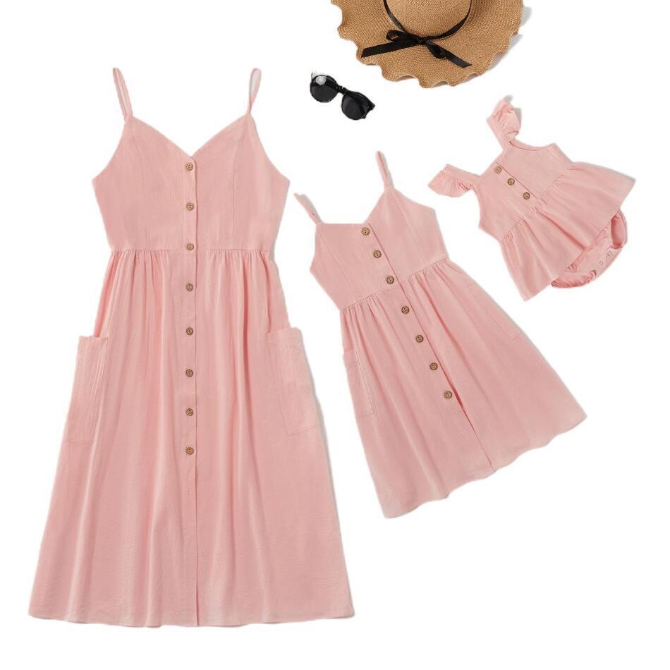 新作 母娘のドレス家族のマッチング服はママに見える赤ちゃんママの女の子のドレスパッチ大きなポケット女性と子供の幼児の衣装