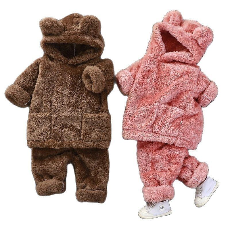 新作 冬のホームウェア寝間着パジャマ赤ちゃん男の子女の子服セット厚く暖かいフランネル幼児子供家族スーツ子供スーツ