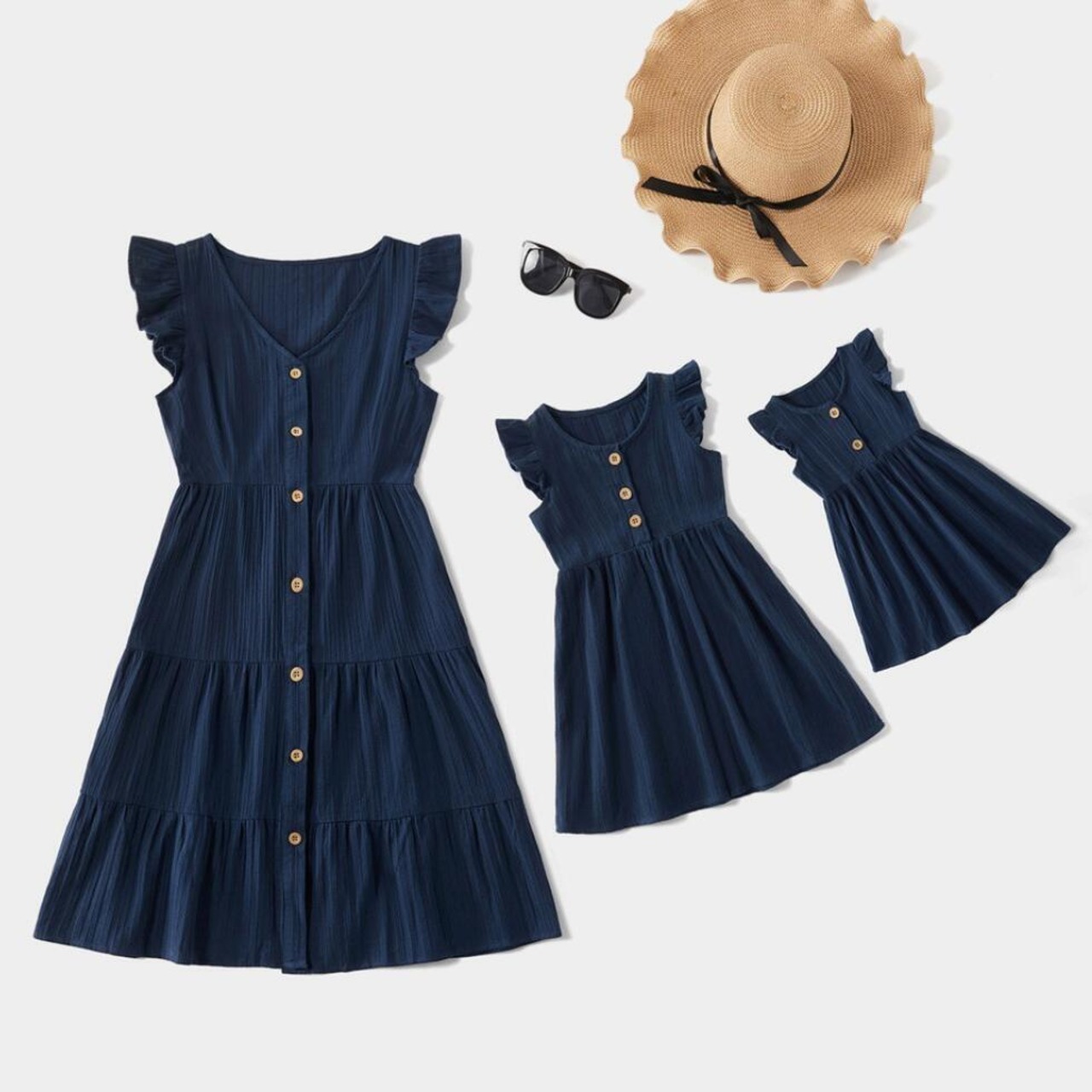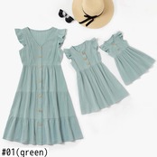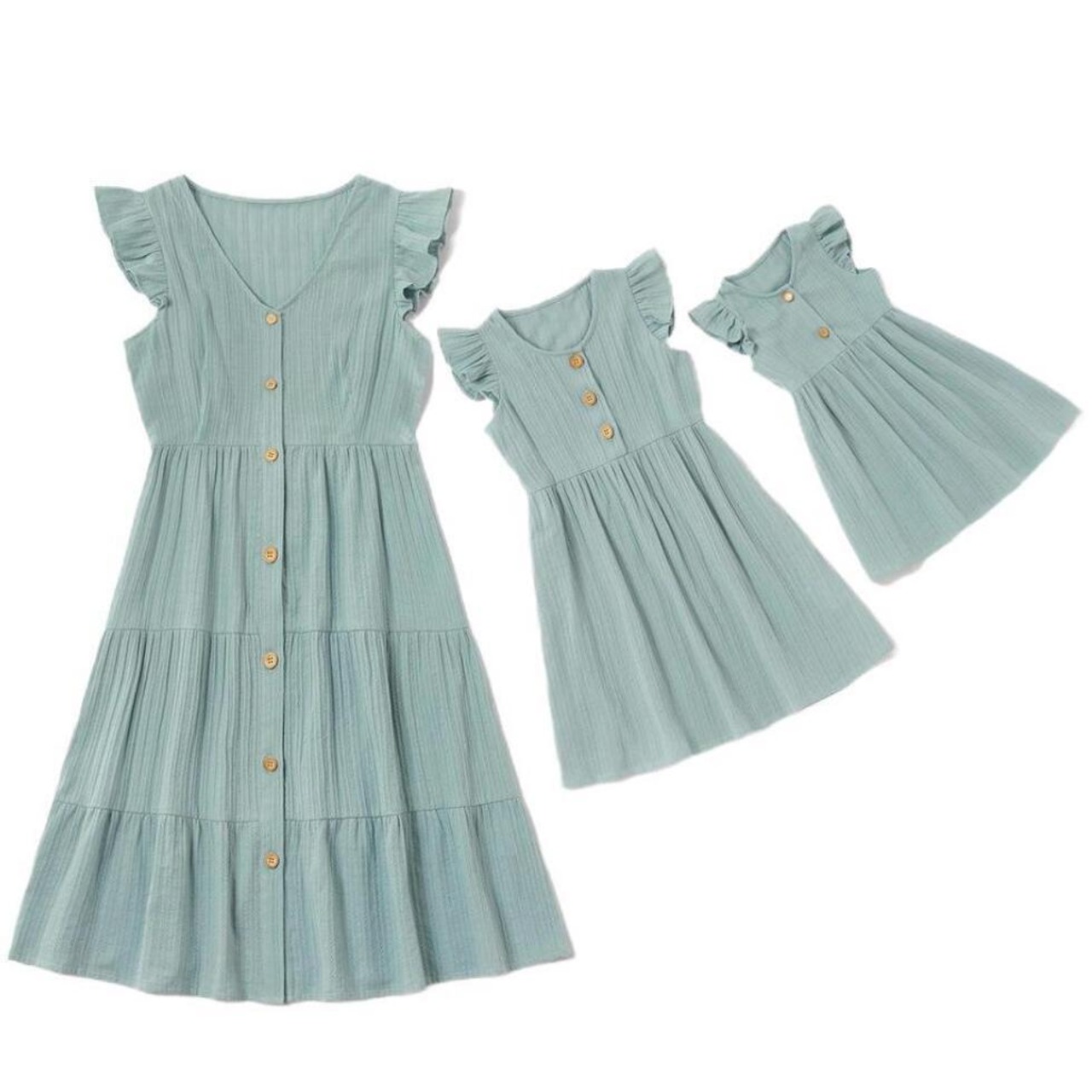 新作 夏の家族のマッチング衣装母娘ドレスママと私服ノースリーブ女性女の子幼児ベビードレス