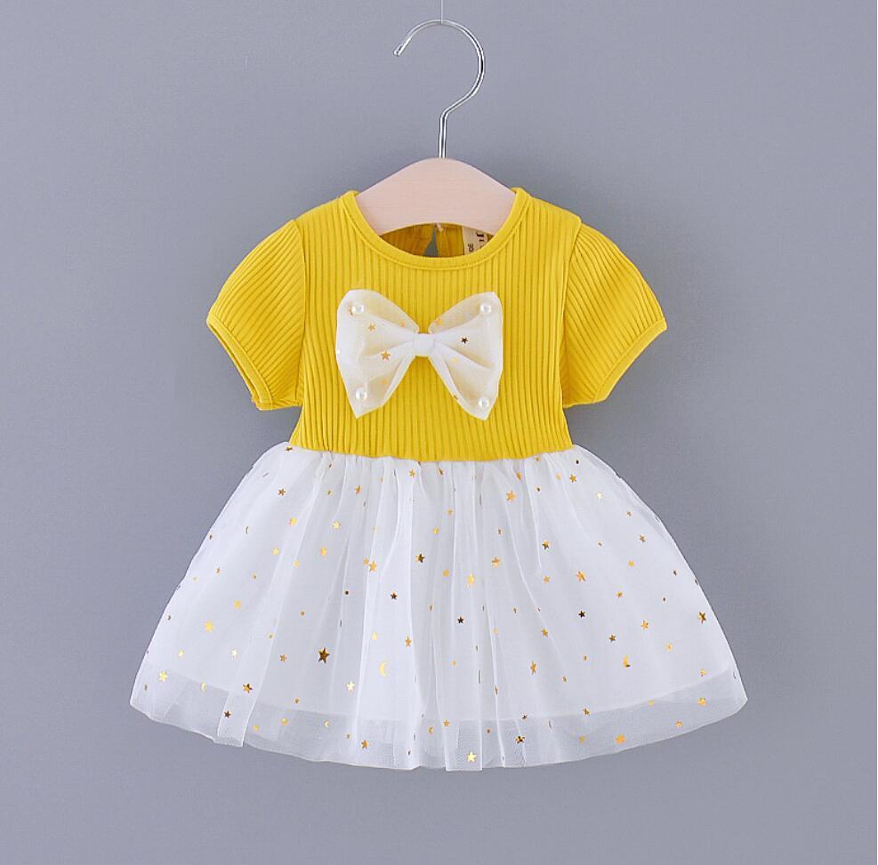 新作 新生児 0 1 2歳用 幼児&キッズドレス サマーボウノットシャイニングスタープリンセスドレス ベビー服ニットドレス