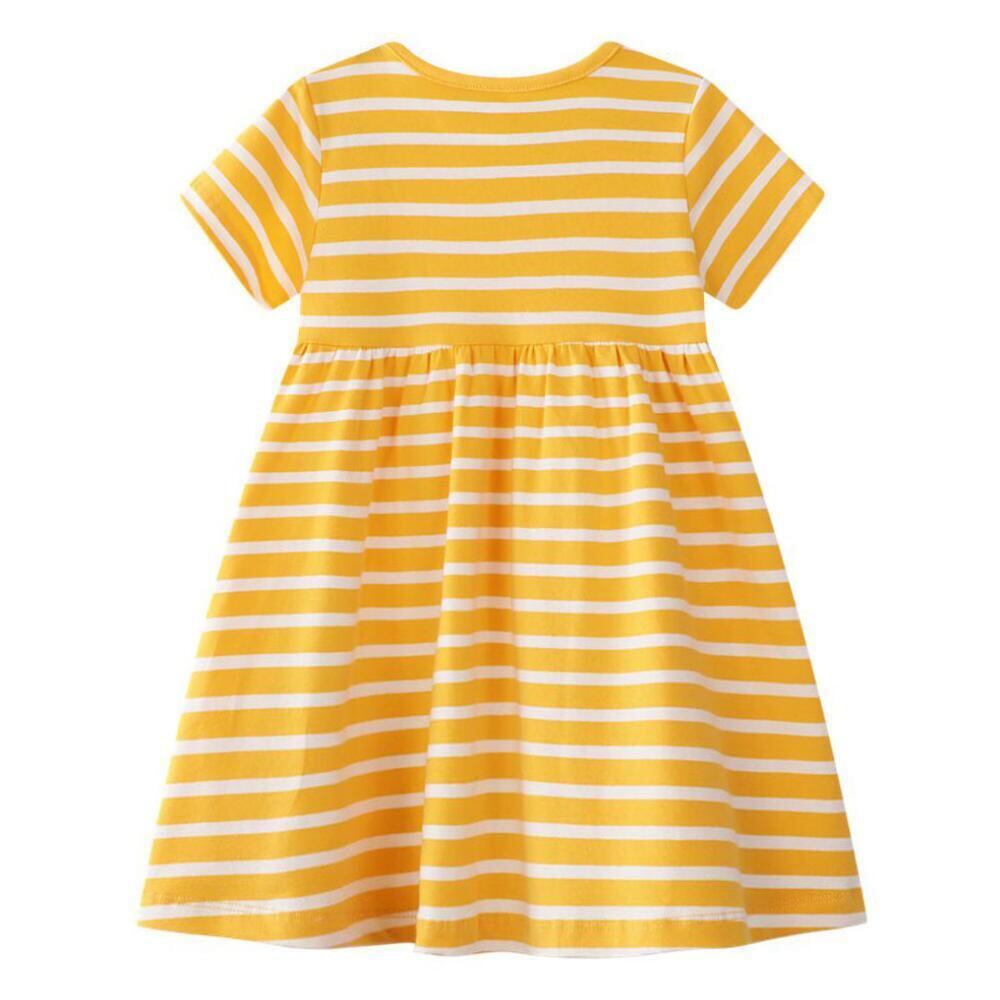 新作 ガールズドレスレインボーストライプキッズサマードレスベビーガールコットン服子供半袖Vestidos