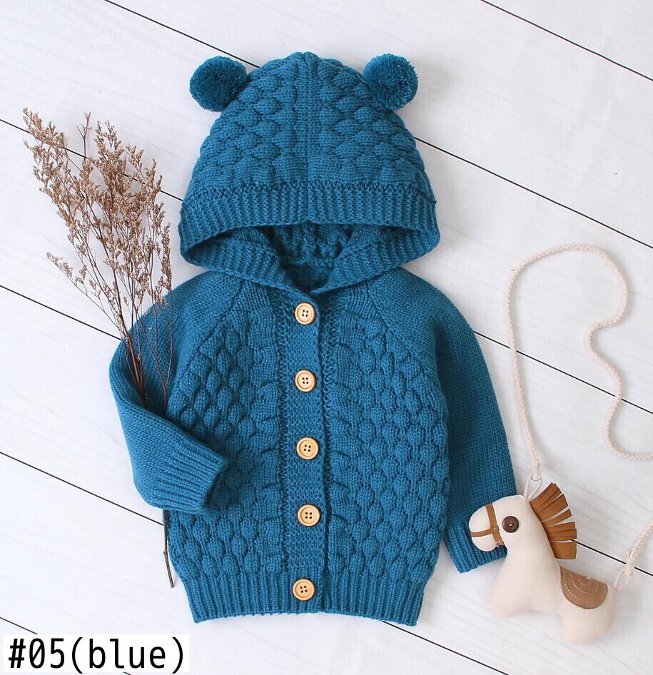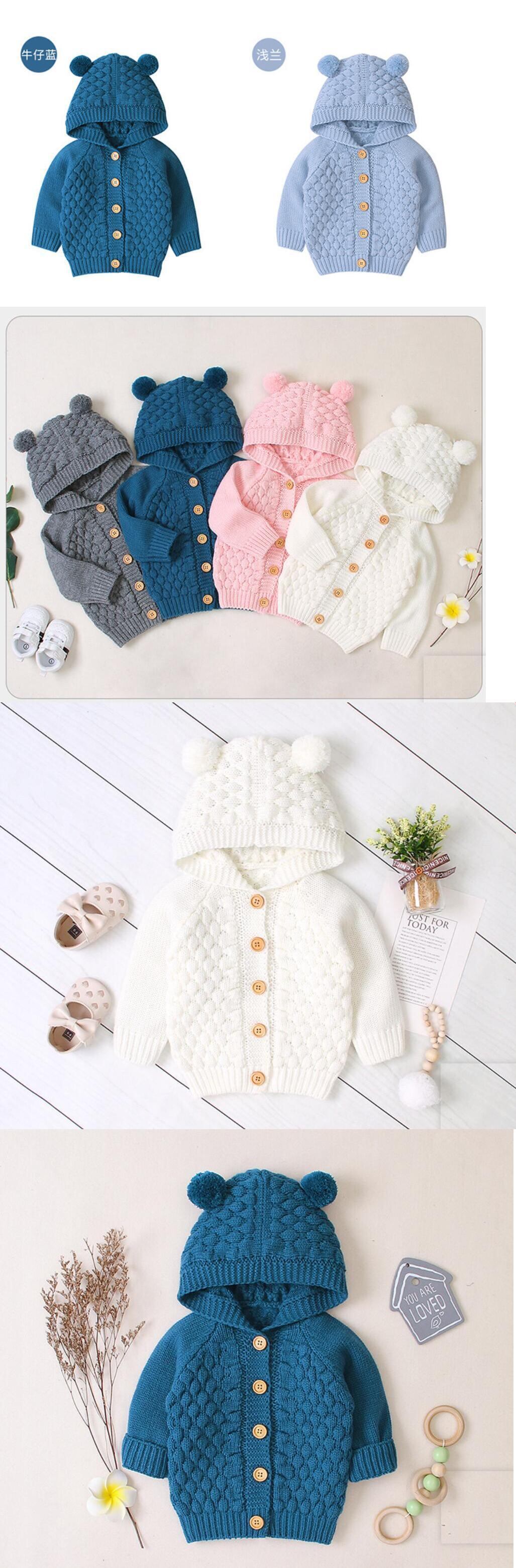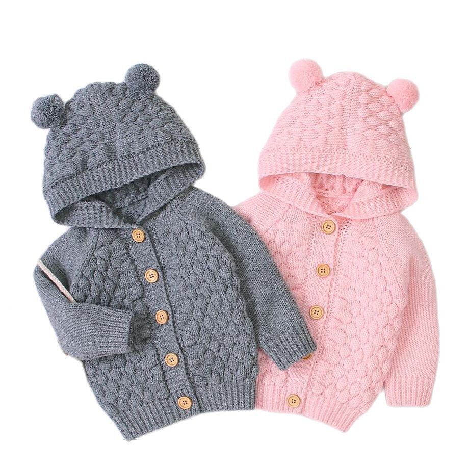 新作 生まれた幼児の赤ちゃんの女の子の男の子のカーディガンの服秋冬のジャケット暖かいコートニットウールセーターフード付きボタンアウター