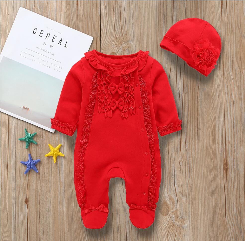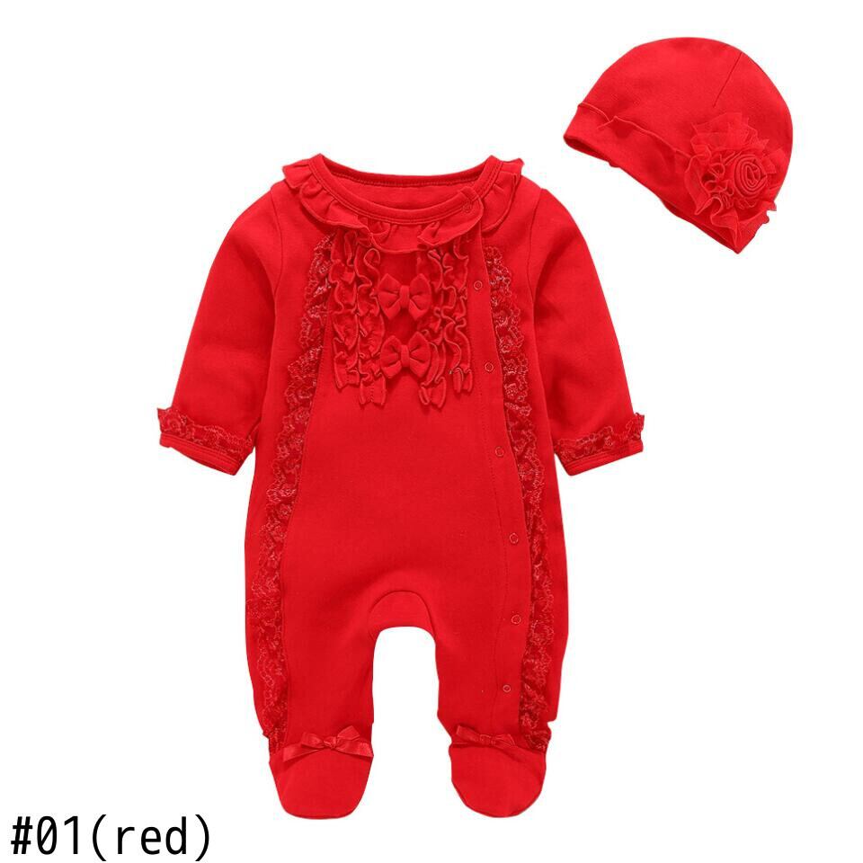 新作 生まれた赤ちゃんの女の子の足-包まれたワンジー秋冬ロンパースボディスーツプレイスーツかわいいレースジャンプスーツ帽子赤ちゃんの女の子の服の服