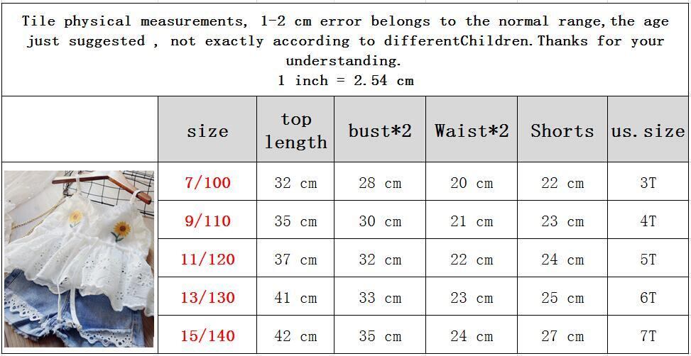 新作 女の子の夏服セット子供刺繍フローラルレースブラウス/トップ+ショーツジーンズ2個スーツベビーキッズ3-7歳