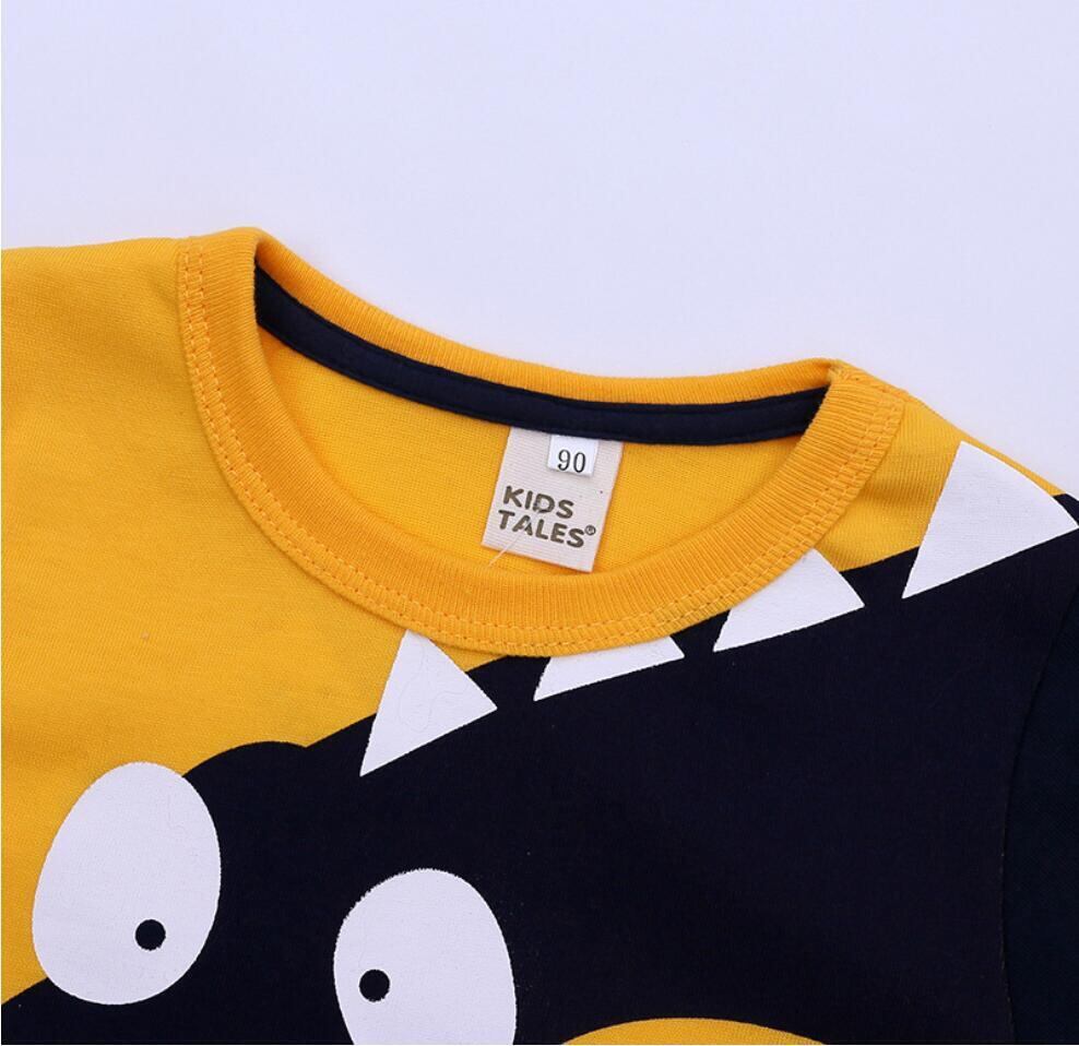 新作 キッズブラウスシャツベビーボーイズ服2019秋ニューボーイズコットン長袖Oネックスペース恐竜プリントTシャツ