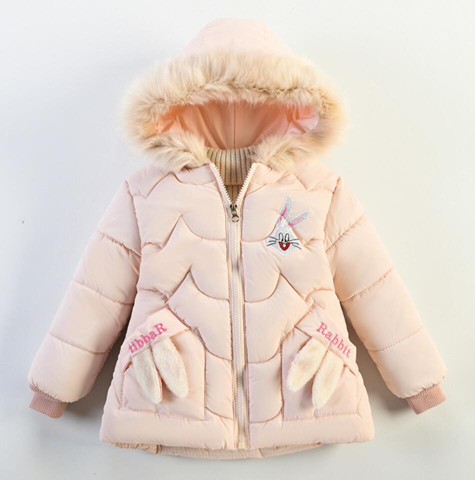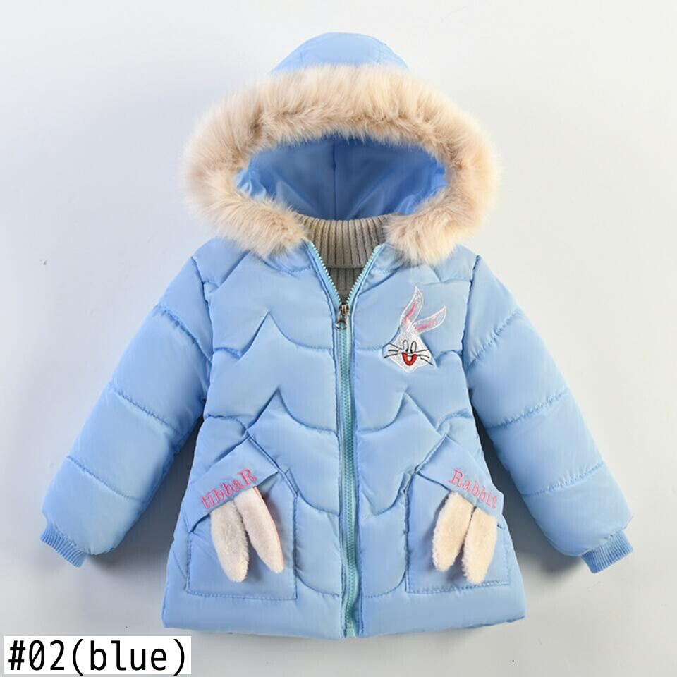 新作 子供暖かい上着コートかわいいウサギフード付きジャケット女の子冬の綿パッド入りの服幼児キッズジャケット234年