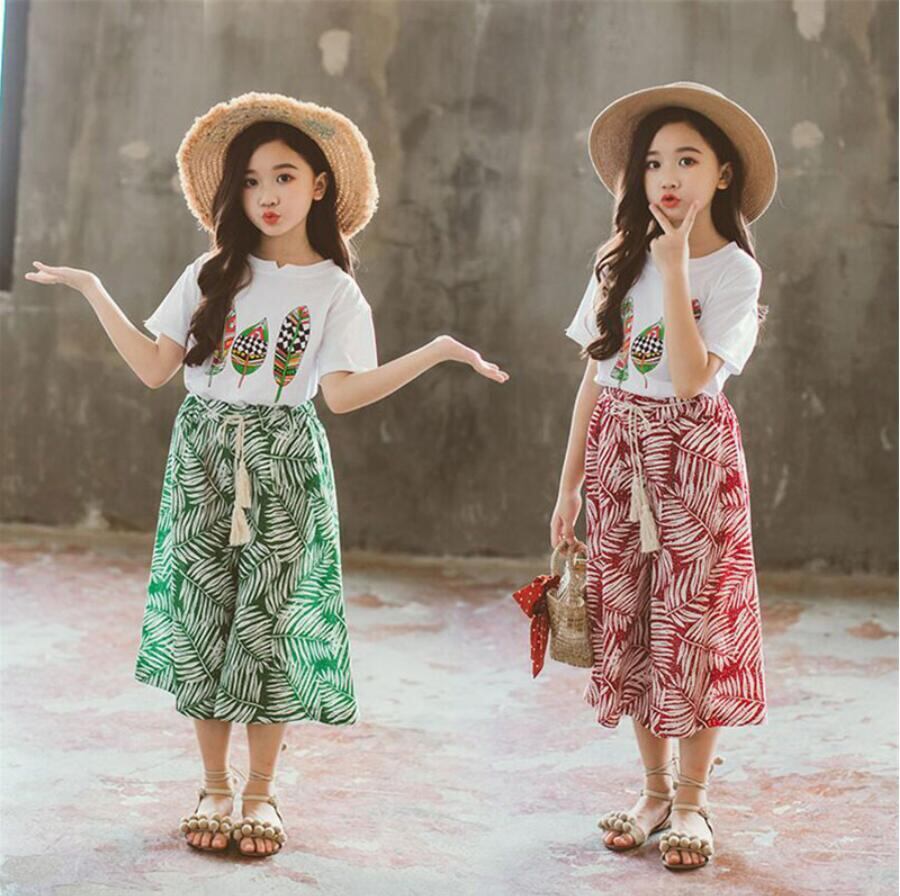 新作 2021年夏の女の赤ちゃんの服セット半袖+ワイドレッグパンツ子供服子供ティーン57 9 1012年