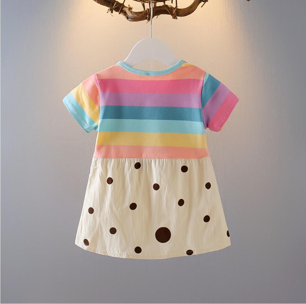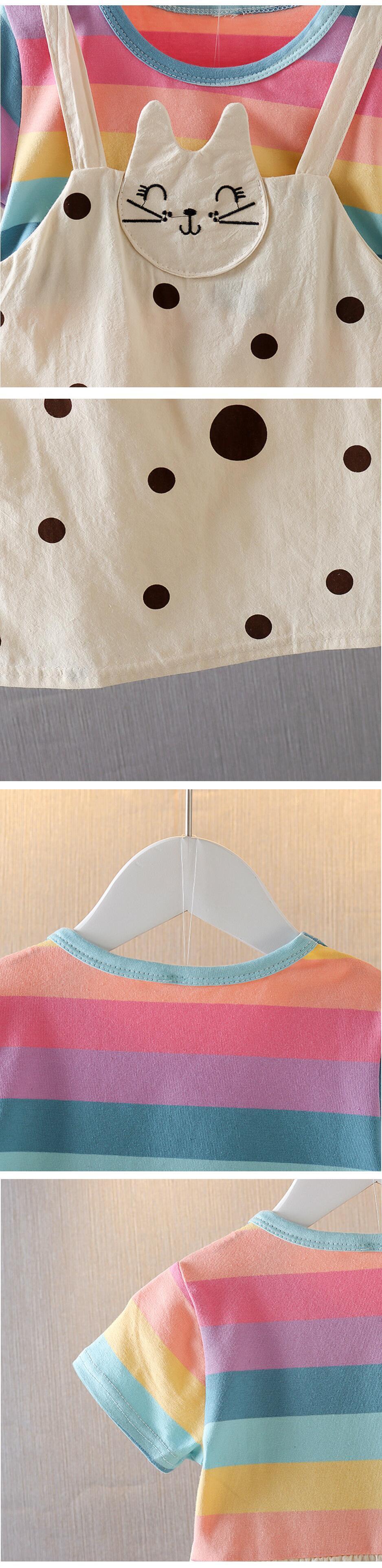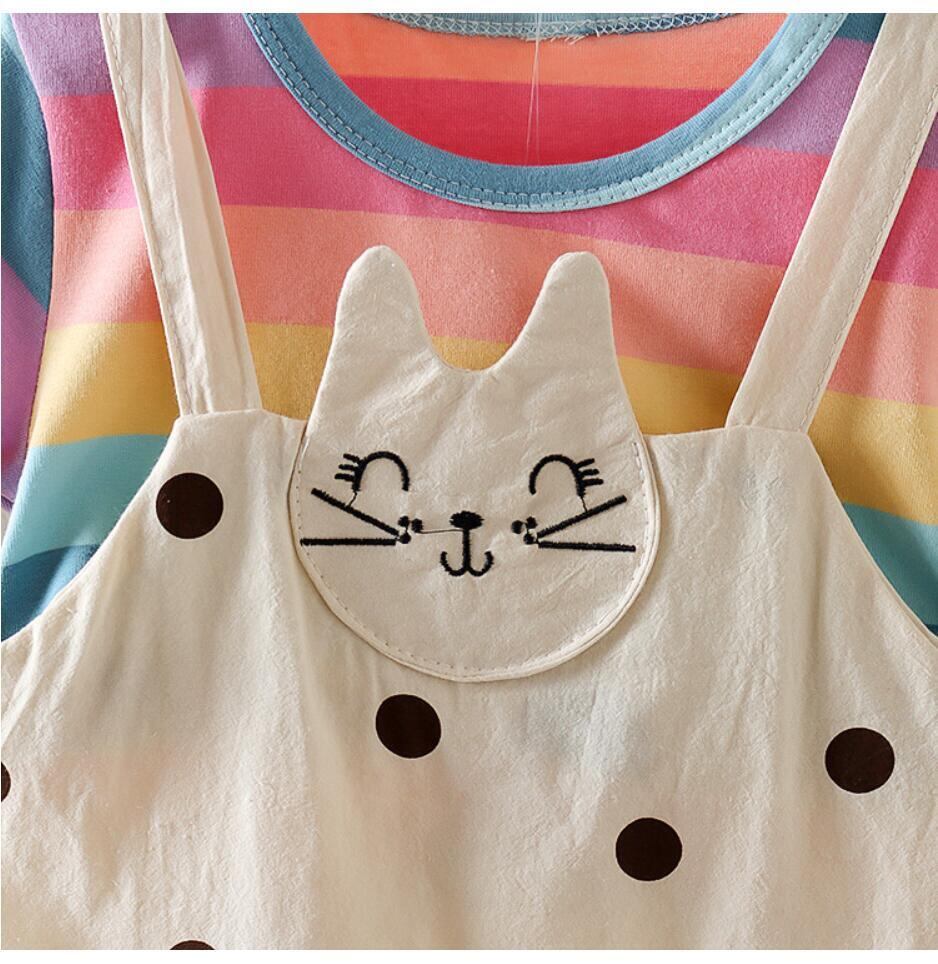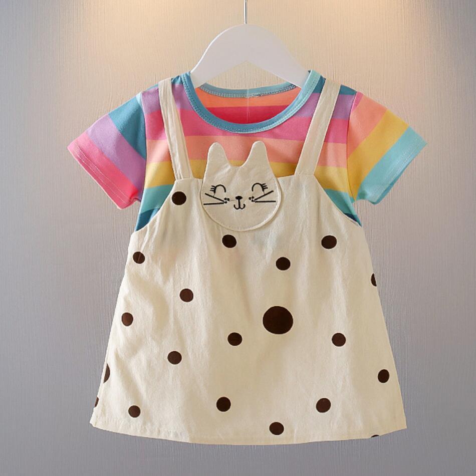 新作 幼児の女の子のドレス赤ちゃんの夏ができるかわいい猫レインボーストライプのドレスストラップ付き幼児生まれのドレス0-2y
