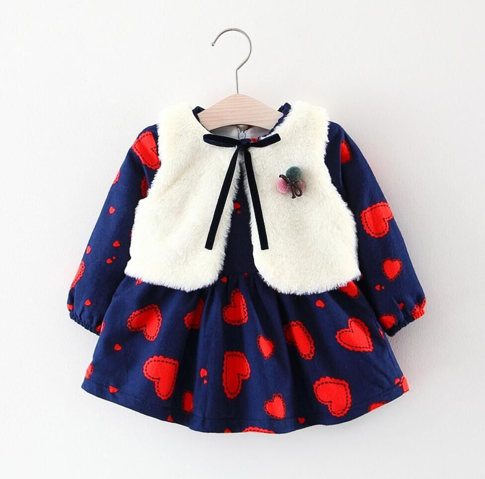 新作 2019子供セットドレス+ベスト2pcs女の子セット秋冬女の子服12 34歳子供服