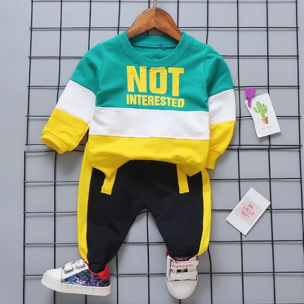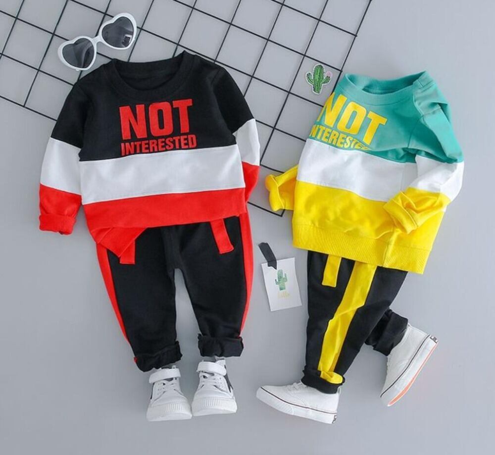 新作 生まれた男の子の女の子セットコットンキッズ幼児服レタースポーツスーツ男の子幼児セーターフルTシャツ+パンツ