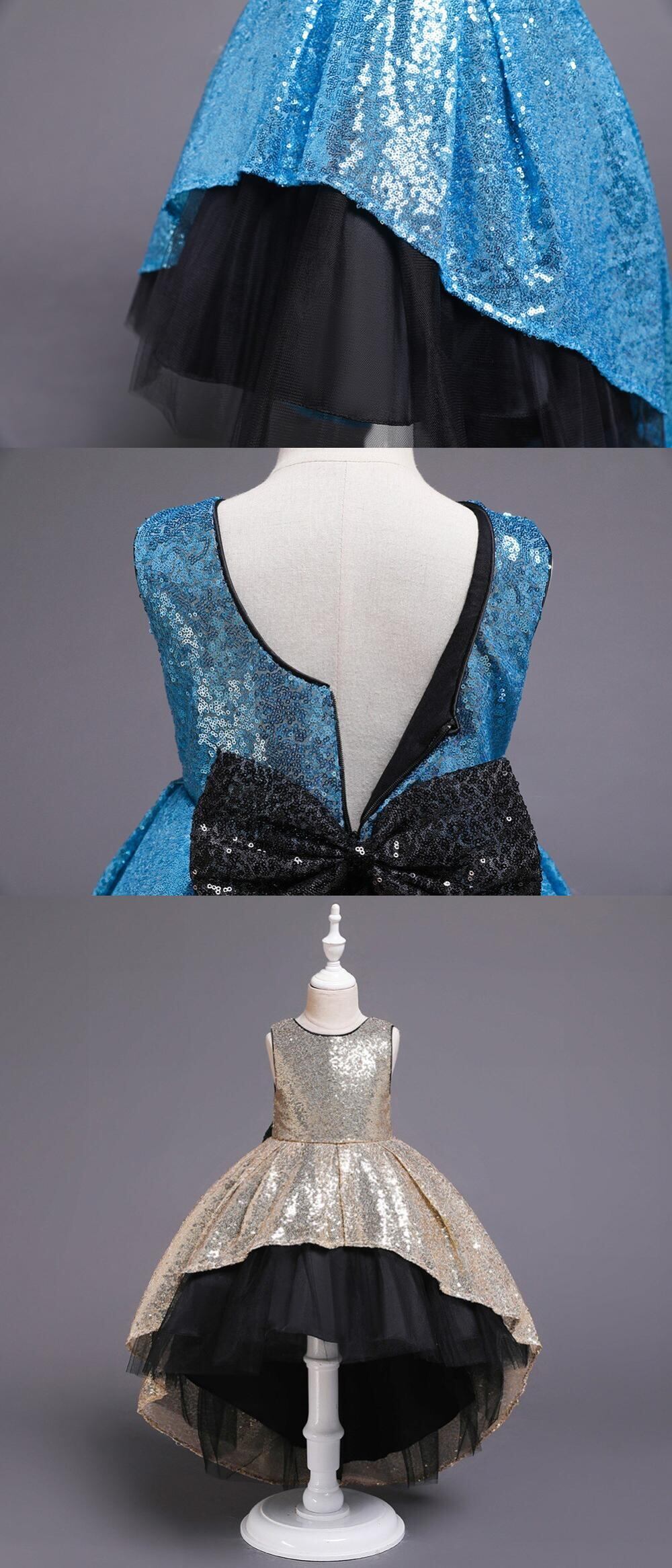 新作 子供スパンコールドレスノースリーブビッグボウカクテルプリンセスパーマンス服ベビー結婚披露宴ドレス