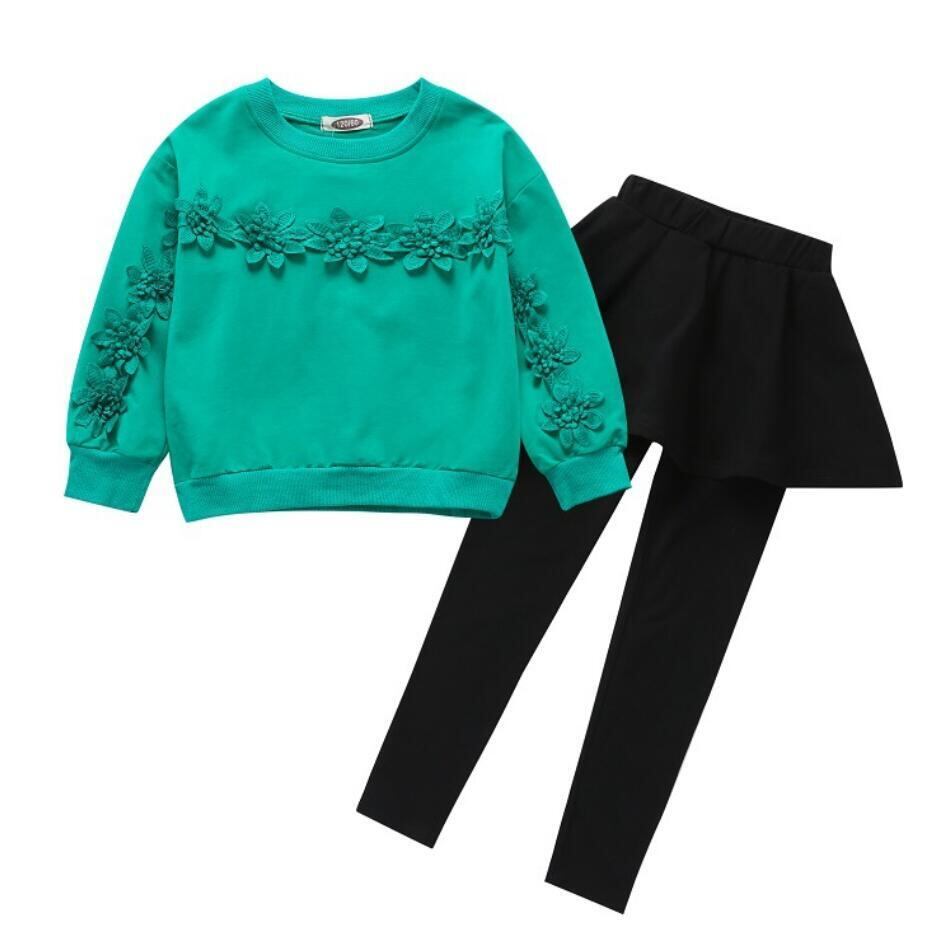 新作 2021年子供秋冬セーター+パンツスカートガールズセット幼児キッズ服スーツ4-12歳