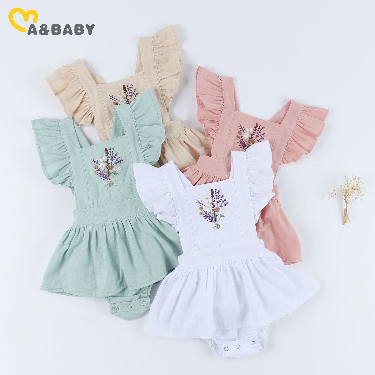 新作 Ma&Baby0-24Mヴィンテージ生まれのベビーガールロンパース刺繡フラワーオーバーオールジャンプスーツかわいい幼児の女の子夏