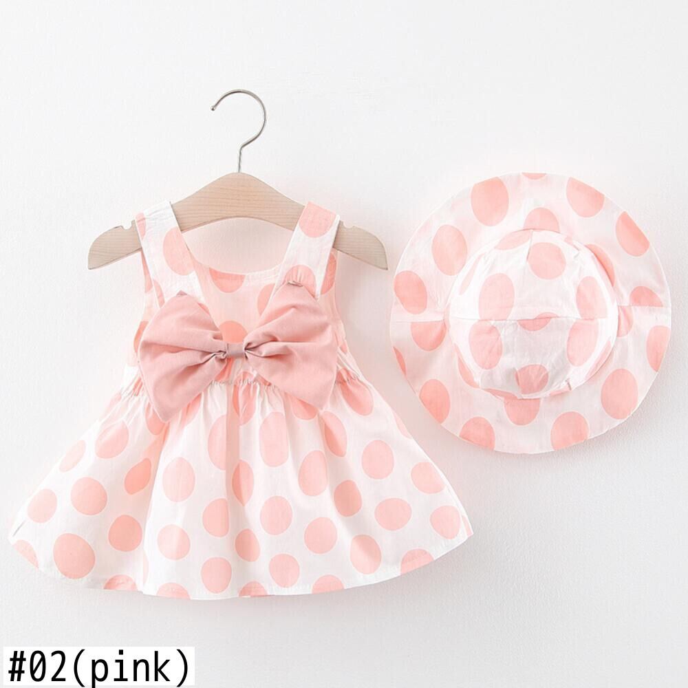 新作 0-2歳の女の赤ちゃんのドレス かわいい2点セット パーティー コットンフラワー 生まれたての赤ちゃん&子供用 ポルカドットドレス+帽子付き