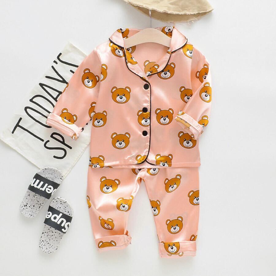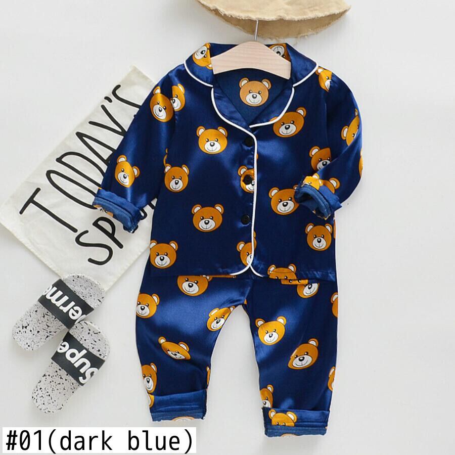 新作 男の子女の子パジャマアイスシルクトラックスーツ子供夏のエアコン子供スーツ漫画印刷トップスシャツ+ズボン