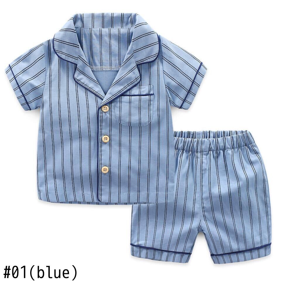 新作 綿100%ベビーサマーパジャマボーイズガールズ2点セットキッズシャツショーツスーツストライプナイトウェアソフト通気性ホームウェア