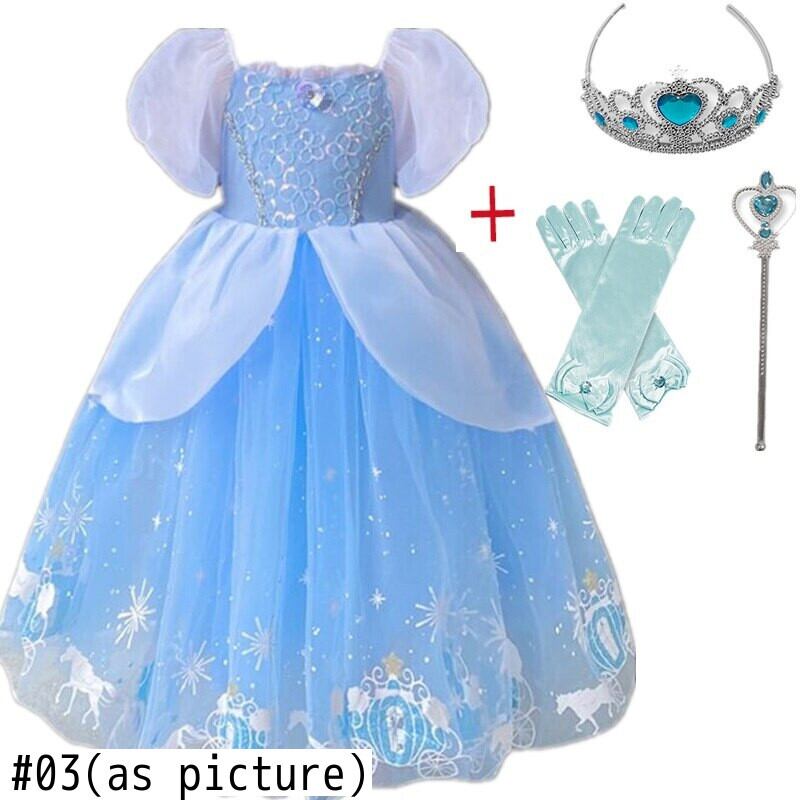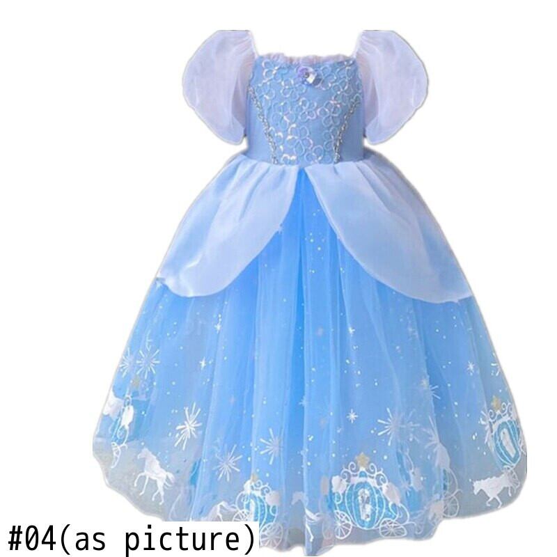 新作 キッズクイーンコスプレドレスアクセサリーセットドレスアップスノーフレークユニコーンプリントロングドレス3-8Y