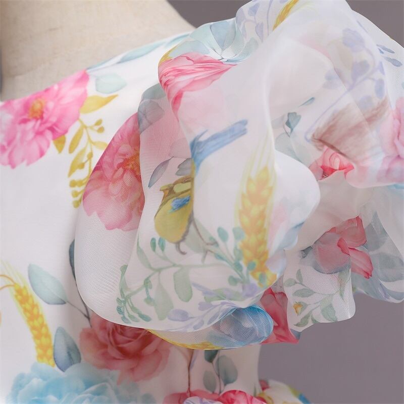 新作 フラワーパフスリーブドレスチャイルドガールズドレスキッズ368年チュチュボールガウンChirstmasキッズバースデーパーティードレス