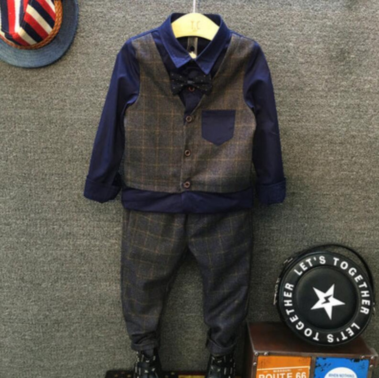 新作 2019 Spring Boy GentlemanSuit長袖TシャツBoysKidsClothes子供服子供用セットフェイクツーピーストップス+パンツ2pcs