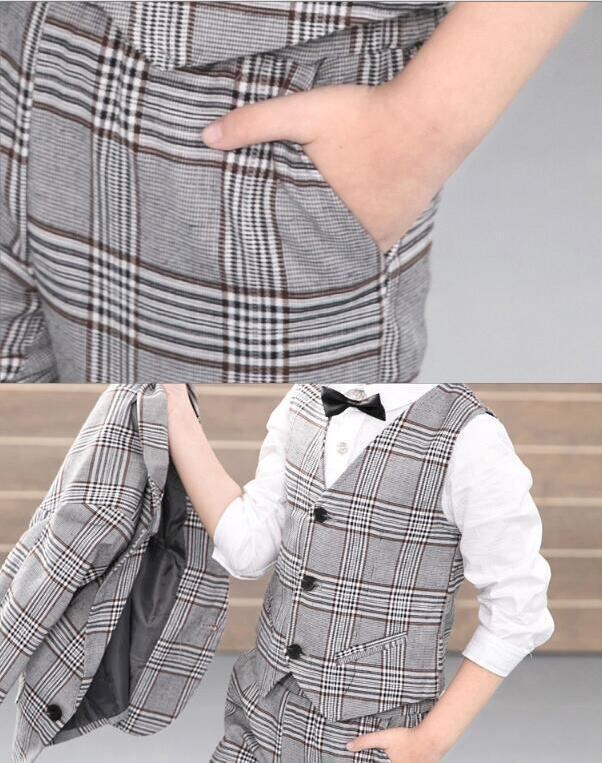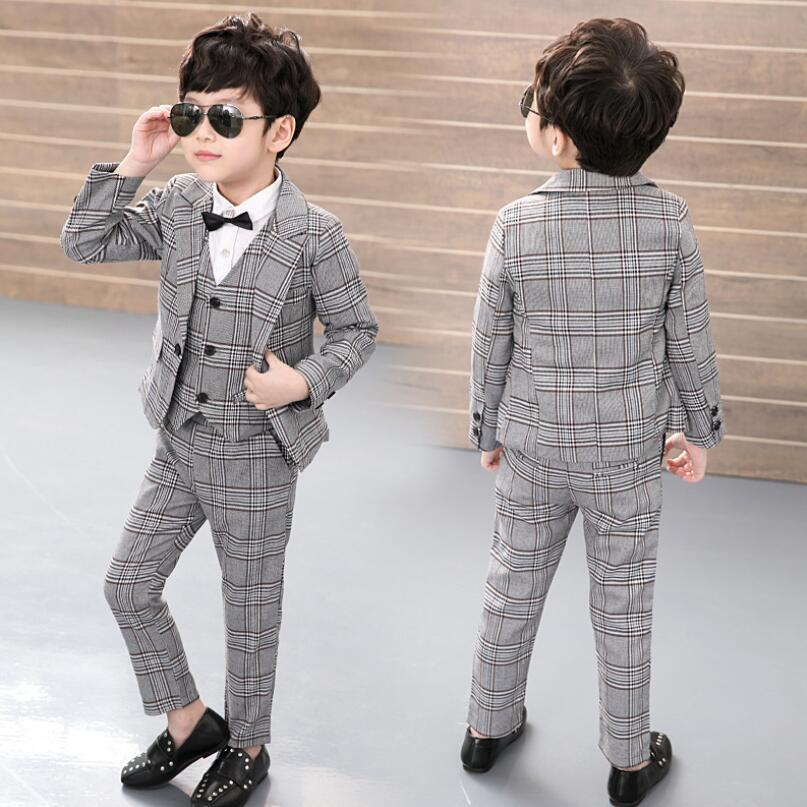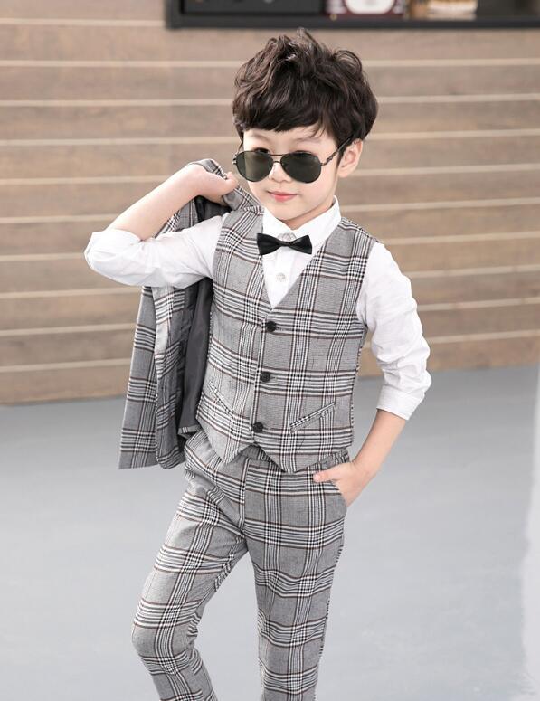 新作 School unim Children Boys mal Birthday Suits Blazer Pants vest 3Pcs Kids Gentleman Party Child Gien Check
