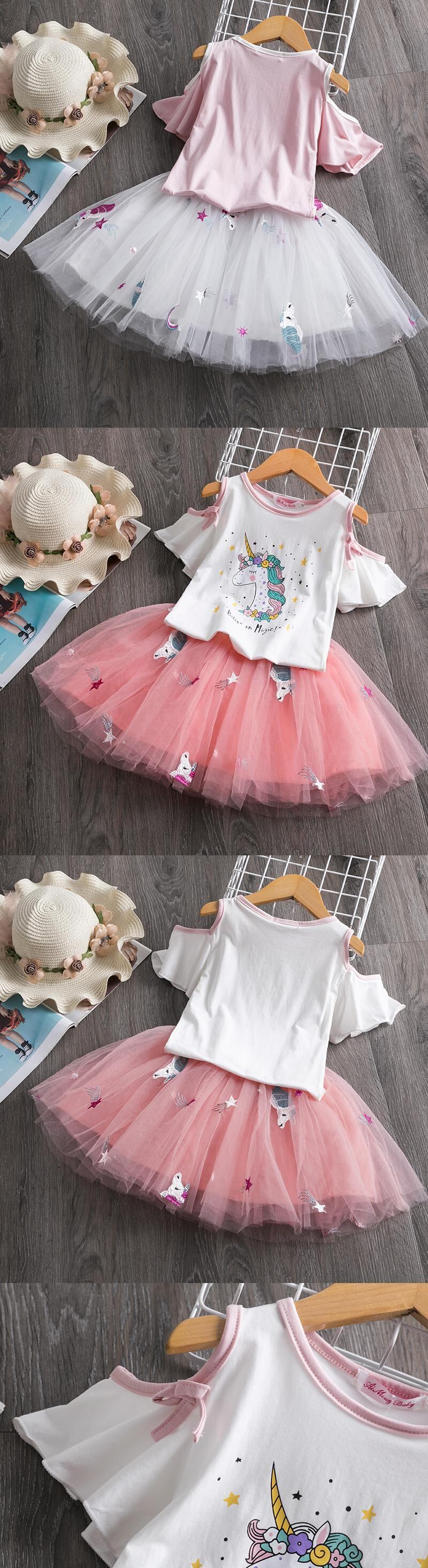 新作 かわいい白鳥のドレス女の子サマーレース半袖キッズドレス女の子ツツドレスTシャツ+ドレス2pcsセット子供服