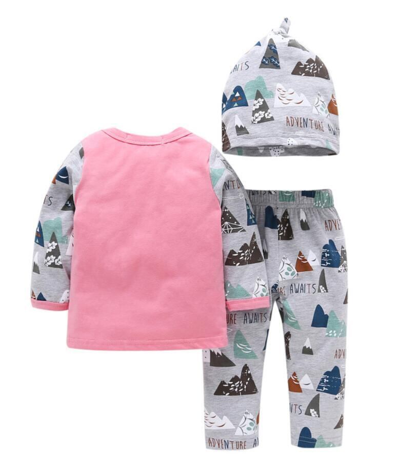 新作 INS秋の幼児ベビーガール男の子服スーツ長袖Tシャツ+パンツ+帽子ベビー衣装男の子3点セット