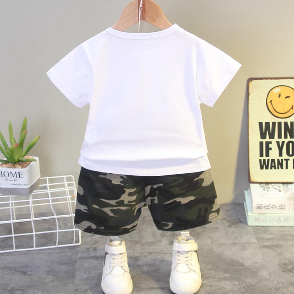 新作 子供服2021年夏の赤ちゃん男の子迷彩バッグTシャツショーツ2個/セット幼児用コットンキッズトラックスーツ