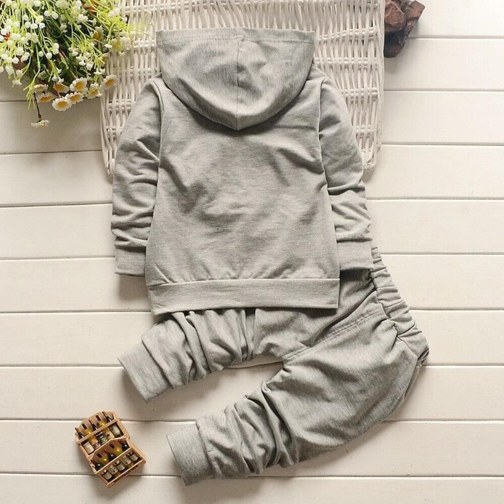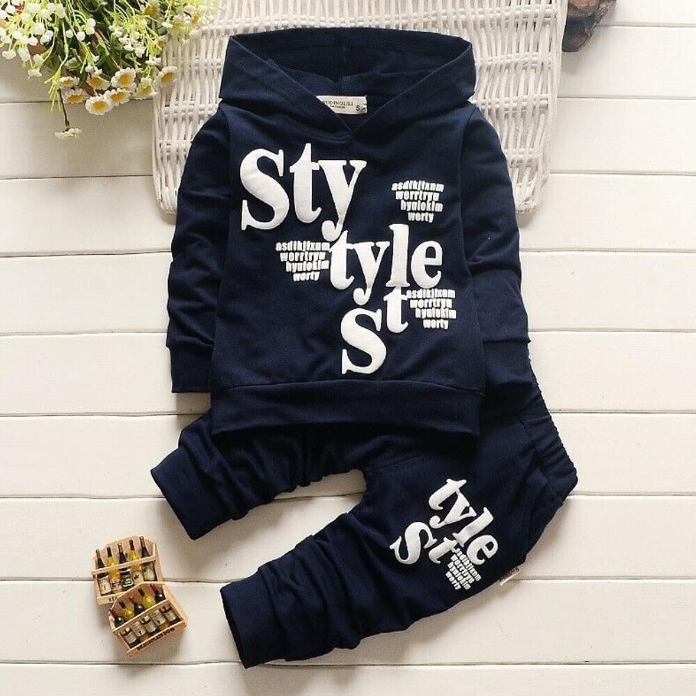 新作 ベビー服スーツ男の子スポーツセット子供2ピースレターフード付きスウェットシャツスポーツパンツキッズセット