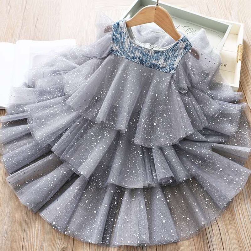 新作 サマードレスガールズレースメッシュスパンコールチュチュVestidosキッズフェアリーウェディングチュールパーティーボールガウン子供ドレス