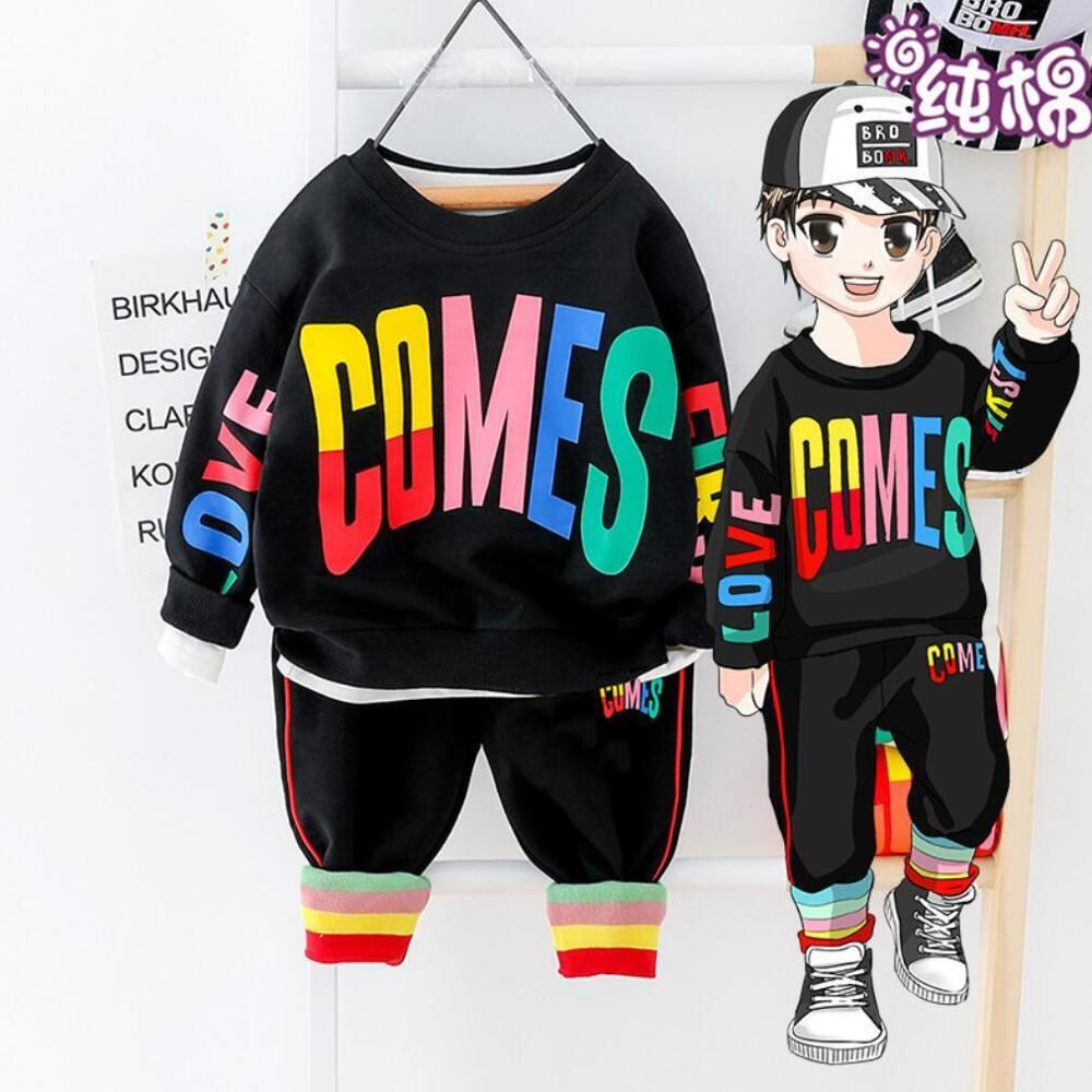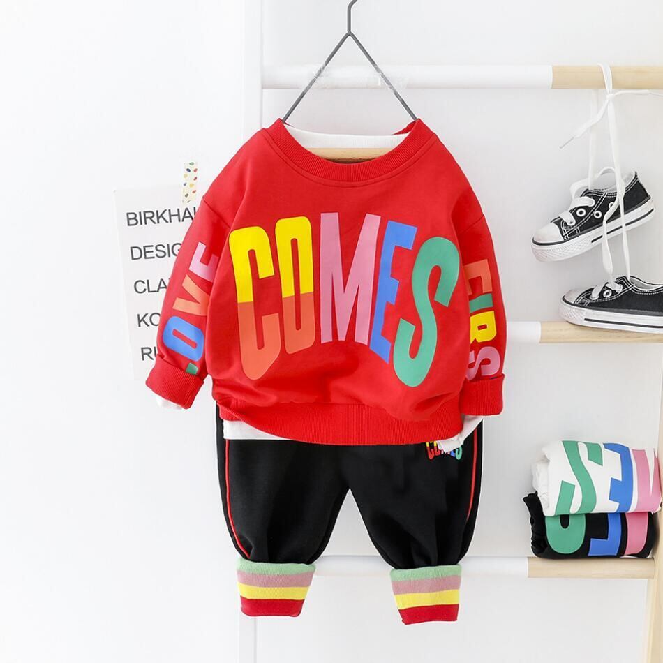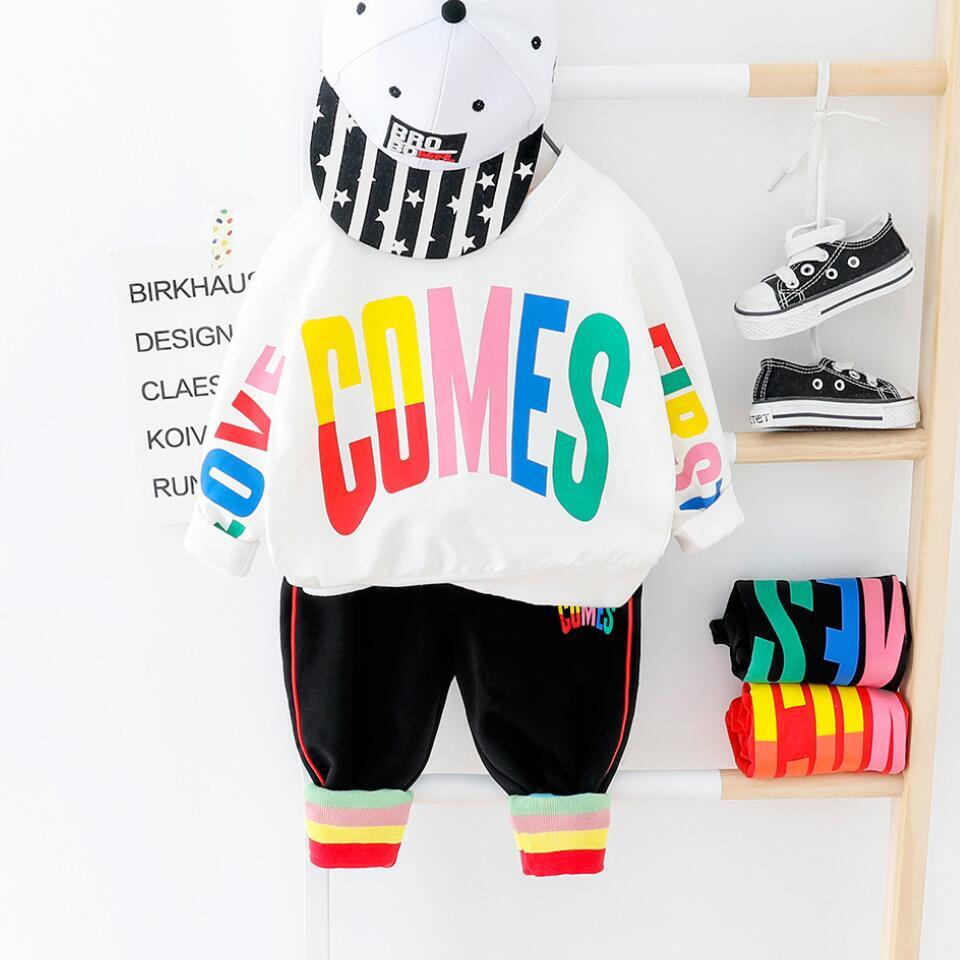 新作 2020年セール男の子服幼児子供ファッションカラーレター印刷男の子スーツヒップホップ服トップス+ズボン