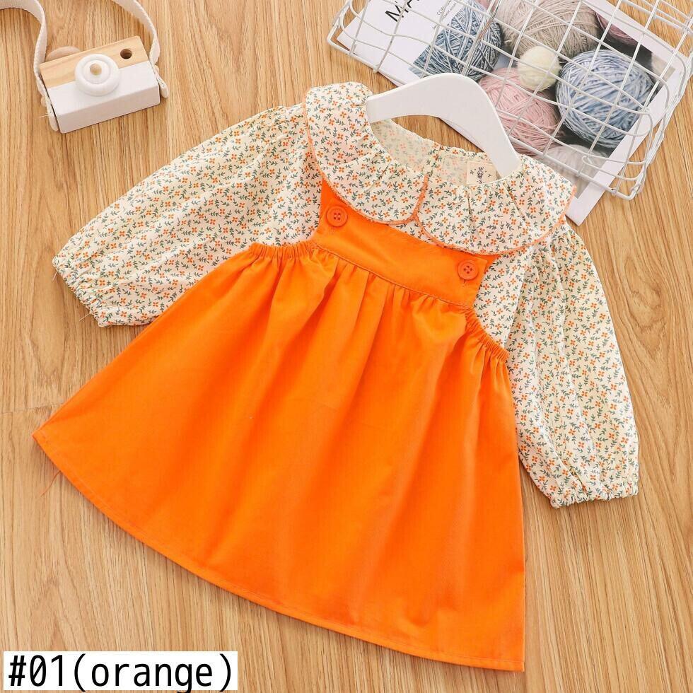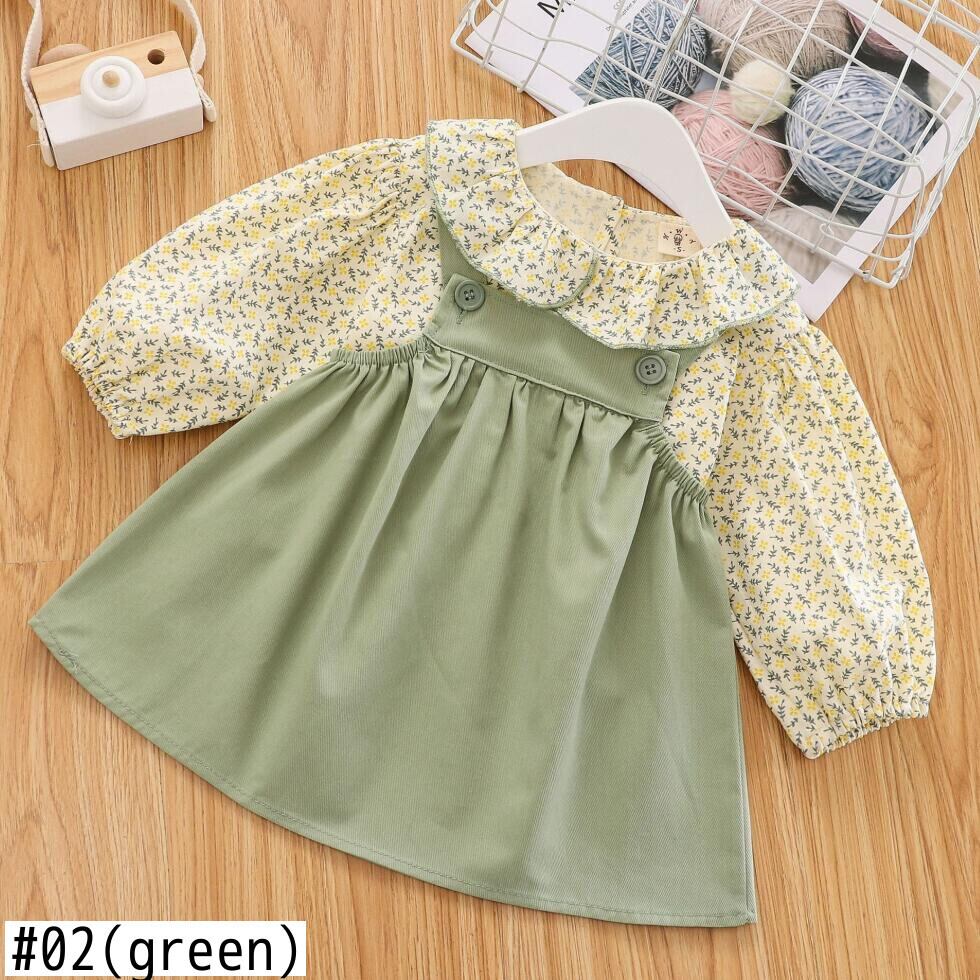 新作 春秋ベビーガールズバージョンフローラルシャツトップ+ストラップドレス生まれキッズ服幼児2枚ドレスセット
