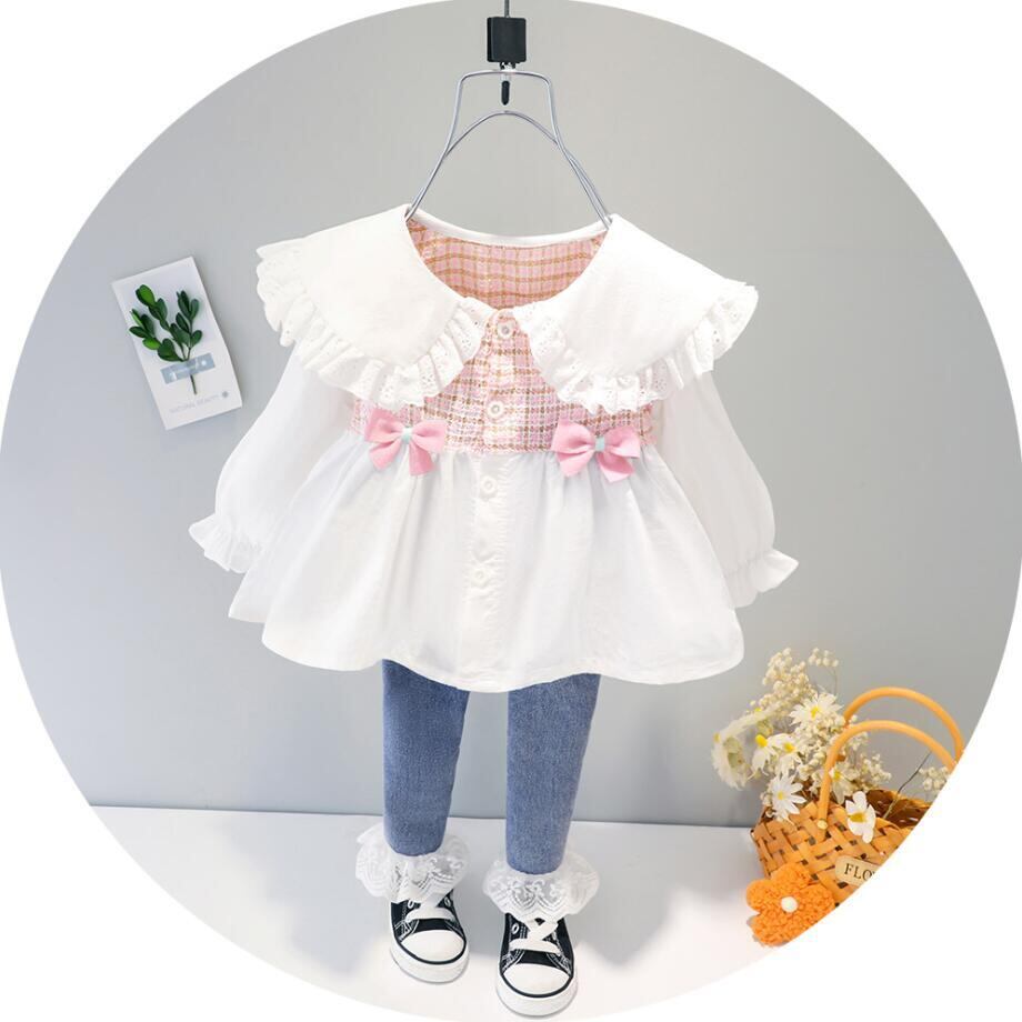 新作 春の子供バタフライドールカラーシャツドレスレギンスジーンズ2個衣装キッズベビーガールズ洋服幼児セット